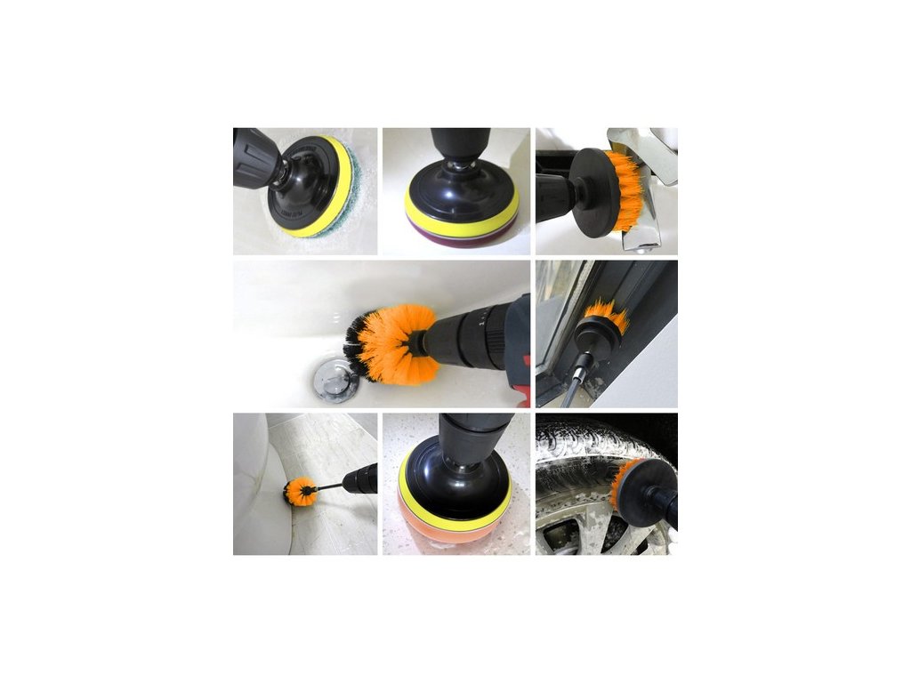 - SNADNÉ, RYCHLE A EFEKTIVNÍ ČIŠTĚNÍ – to jsou kartáče, leštící houbičky a netkaná textilie pro montáž na šroubovák a vrtačku jakéhokoli typu. Mají univerzální kolíky 8mm . Taková sada lze použít v automobilovém průmyslu (např. pro ráfky automobilů), stejně jako v dílně a mnoha domácích pracích, což usnadňuje čištění prakticky všech povrchů.