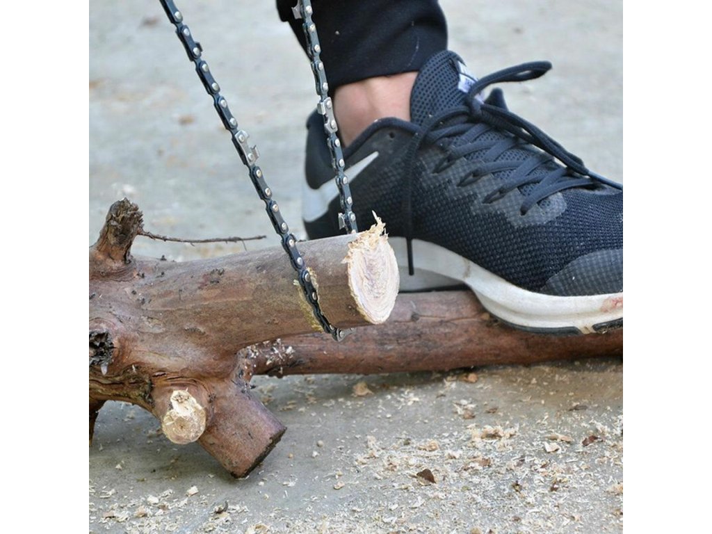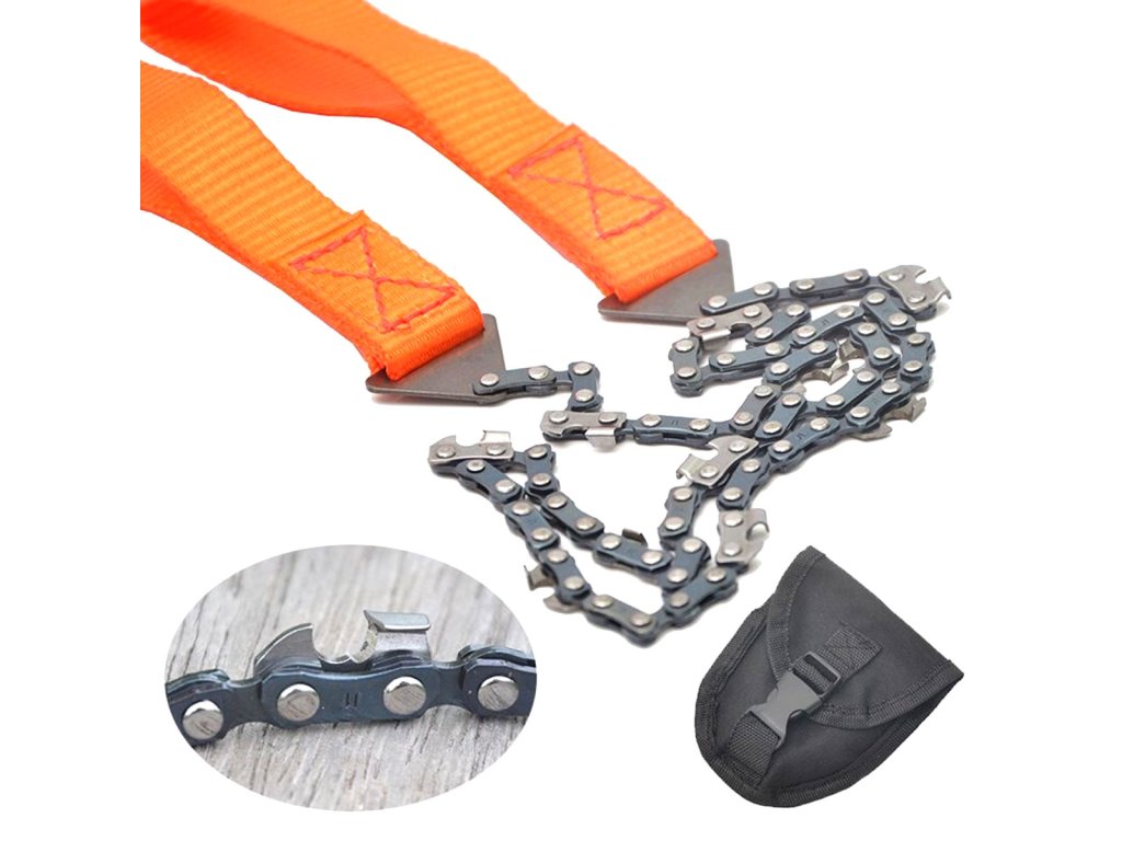 Ruční řetězová pila. Ideální pro turistiku a přežití. Velmi lehký a skladný, takže ho budete mít v případě nouze vždy u sebe. Pohodlné rukojeti usnadňují řezání. Robustní řetěz je vybaven 11 zuby, které lze snadno naostřit.