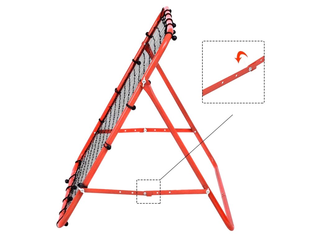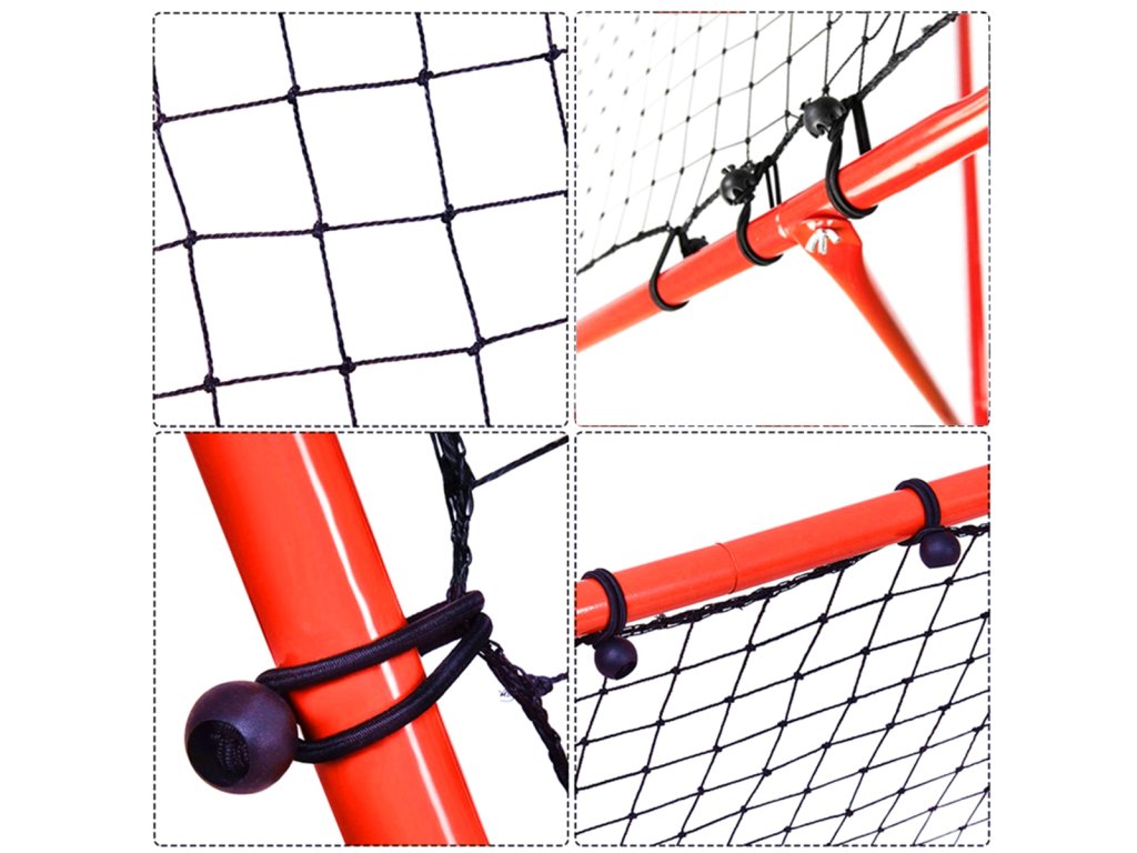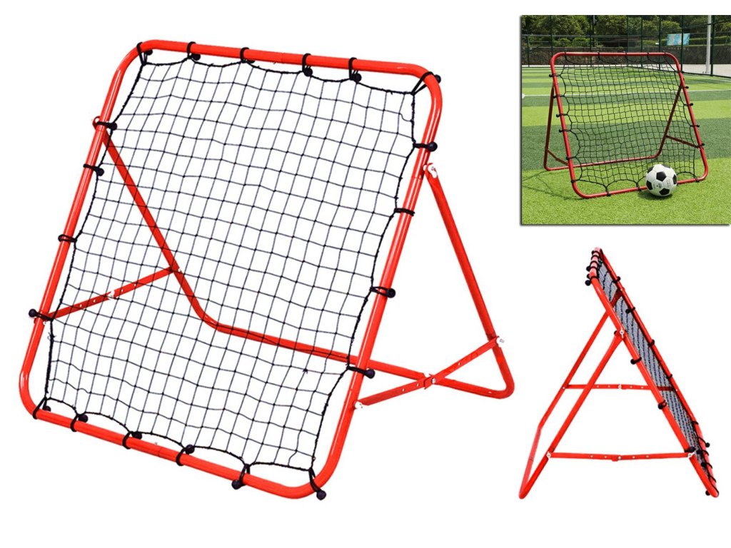 Mini zestaw piłkarski - trenażer (rebounder). Rozwija koordynację ruchową oraz celność. Świetny sposób na spędzenie wolnego czasu przez rodziców wspólnie z pociechami. Rama treningowa umożliwia trenowanie umiejętności piłkarskich. Możliwość składania (na płasko) ułatwia transport, zaś 4 poziomy regulacji umożliwiają zmianę nachylenia bramki. Stabilna, stalowa rama oraz dodatkowe elementy w zestawie umożliwiają stabilny montaż wraz z zakotwiczeniem reboundera w ziemi.