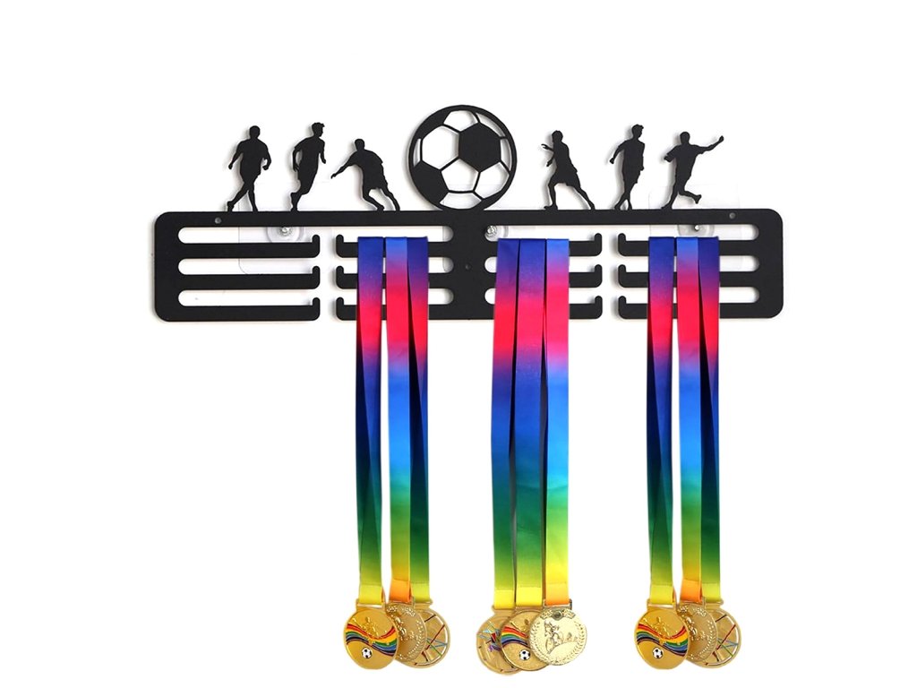 Ocelový věšák na medaile pro sportovní úspěchy. Ideální místo pro vystavení ocenění. Pevná konstrukce určená k zavěšení na zeď. Součástí balení je kompletní sada montážních prvků (šrouby, kolíky a podložky).
