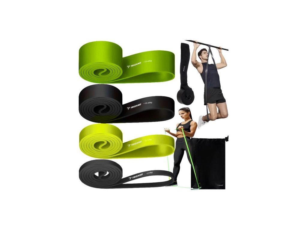 - RŮZNÉ STUPNĚ OBTÍŽNOSTI A ZATÍŽENÍ - sada obsahuje čtyři gumičky různých barev a šířek , ze kterých každý odpovídá jiné úrovni obtížnosti a zatížení . Díky tomu mohou uživatelé přizpůsobit intenzitu tréninku svým individuálním potřebám a cílům. Šedá guma, šířka 6 mm ujišťuje zátěž od 2 do 6 kg , díky čemuž je ideální pro lehké protahovací nebo rehabilitační cvičení. Světle zelená guma, šířka 13 mm nabídky zátěž od 5 do 15 kg , ideální pro středně silová cvičení. Černá guma, šířka 20 mm dodává nosnost od 10 do 30 kg , díky čemuž je vhodná i pro pokročilejší uživatele. Největší výzvou je 32 mm široká zelená guma , nabídka zátěž od 15 do 40 kg , ideální pro intenzivní silový trénink.