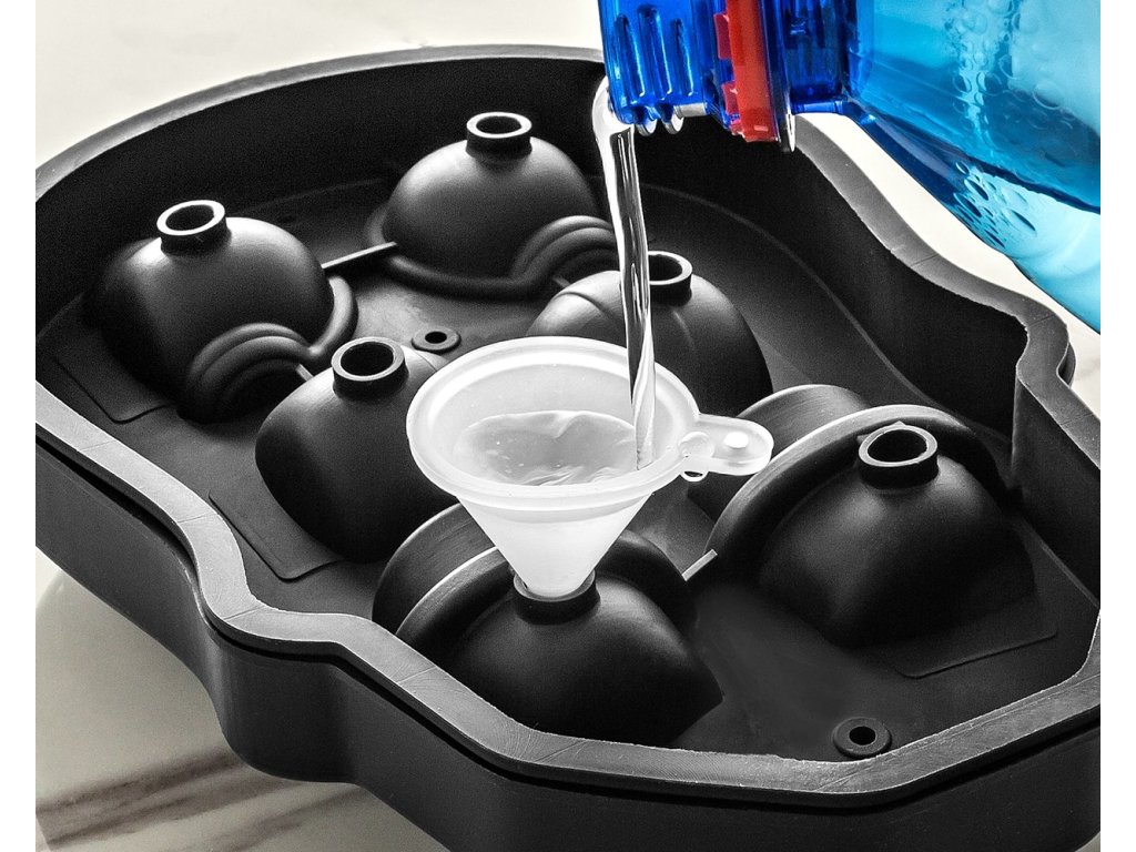Součástí balení je také silikonový trychtýř pro snadné nalévání vody a víko, díky kterému můžete formu přiklopit, aby se vám voda nerozlila v mrazáku.