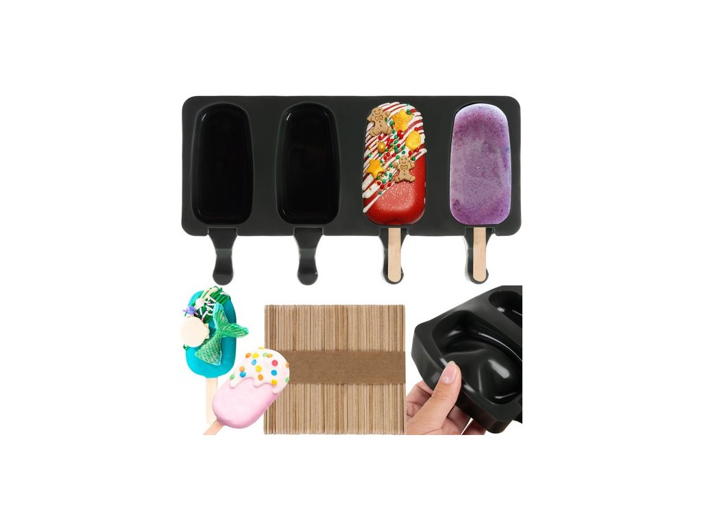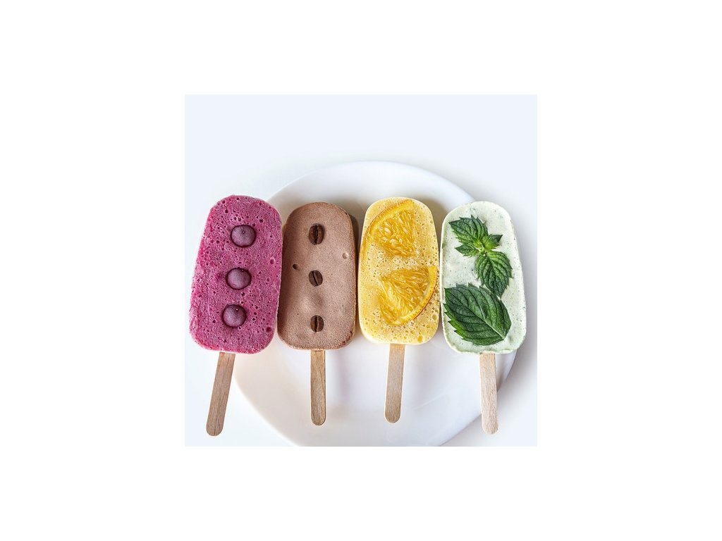 - 4 ZMRZLINA - silikonová forma má 4 otvory na zmrzlinu. Je to skvělé řešení pro vytváření různých příchutí barevného vzhledu zmrzliny. Stačí zalít šťávou, jogurtem nebo rozmixovaným ovocem a zmrazit . Pro snadnější vyjmutí zmrzliny stačí zalít formu teplou vodou.