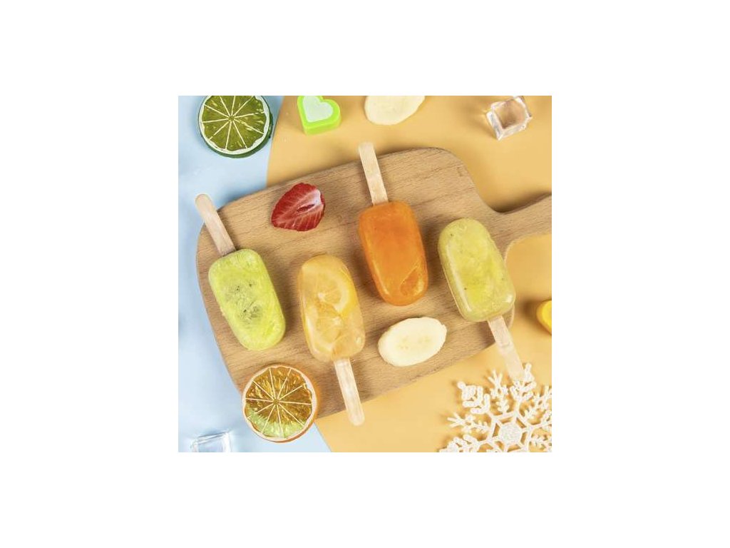 - 50 TYČEK - Dřevěné tyčinky na zmrzlinu jsou součástí formy. Další výhodou forem jsou otvory na konci formy pro vkládání tyčinek.