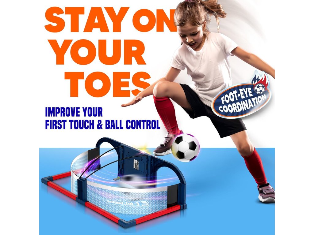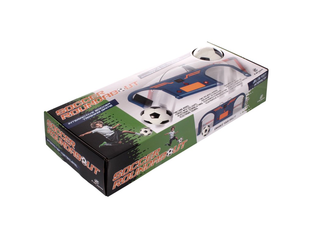 Fotbalový trenažér E-JET Soccer Roundabout je zábavná hra pro děti i dospělé. Tato interaktivní pomůcka vám pomůže zlepšit přesnost, rychlost a postřeh zábavnou formou. Účelem je vždy kopnout míč do levé strany, pravé strany či doprostřed vždy podle toho, jaká LED šipka se zrovna rozsvítí. Na jedno kolo máte vždy 60 sekund a kdo nasbírá nejvíce bodů, vyhrává. Tento trenažér pro malé i velké fotbalisty je tedy ideální pro vytvoření soutěže s přáteli, ale trénovat můžete i sami v pohodlí domova či venku na rovné ploše. - rozměry: 80 x 42 x 23 cm - součástí pěnový míček 12 cm - hmotnost balení: cca 2,37 kg - pro indoor i outdoor použití - šipky s LED osvětlením - 3x AA baterie (nejsou součástí balení) - není vhodné pro děti mladší 6ti letDoplňkové parametry