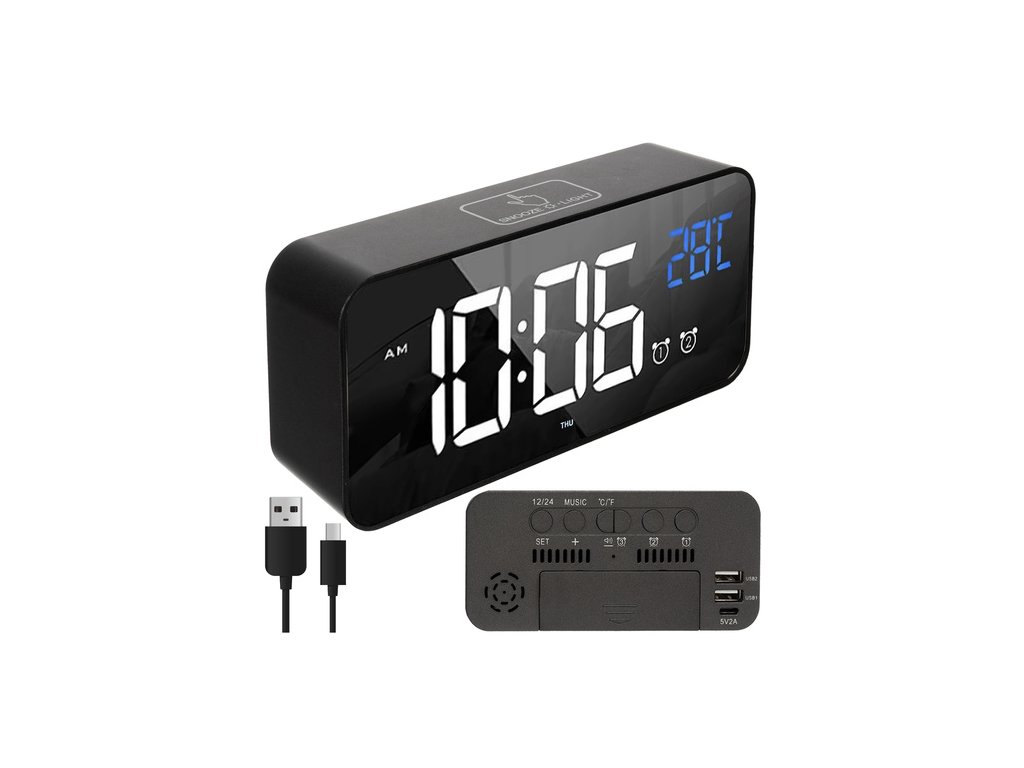 multifunkční displej - elektronický budík zobrazuje nejen čas, ale také datum, den v týdnu a teplotu ve °C nebo °F , takže máte všechny nejdůležitější informace na jednom místě!