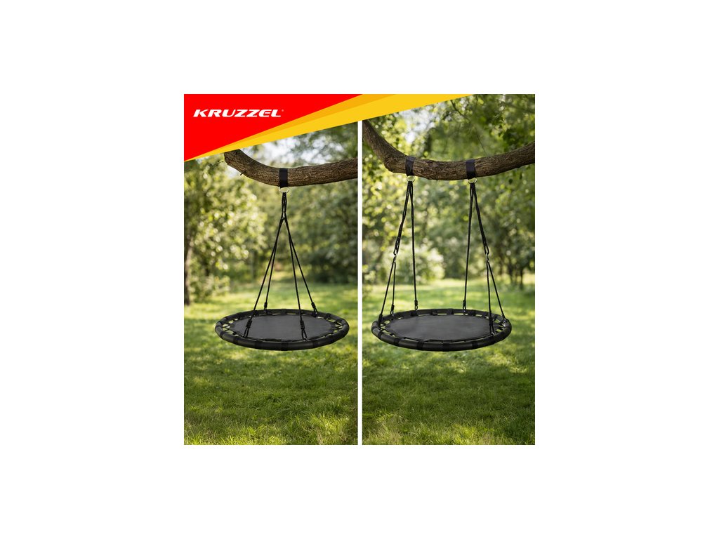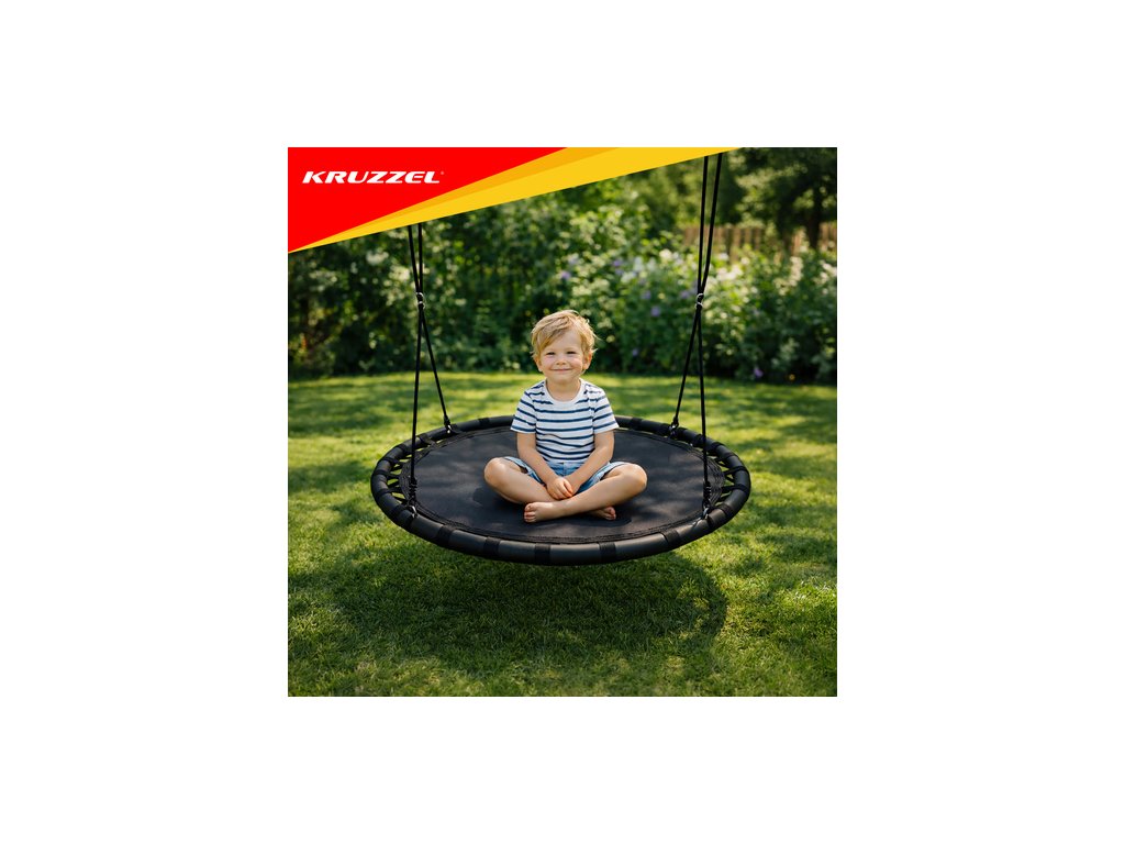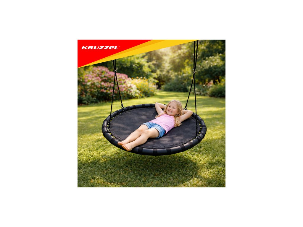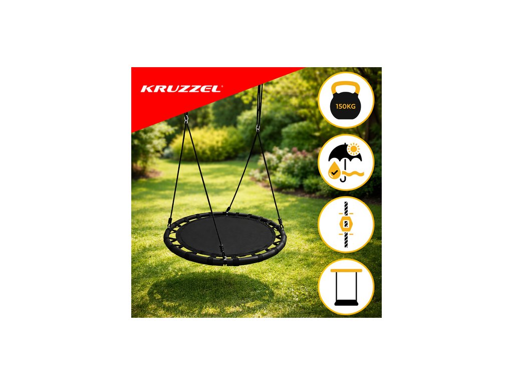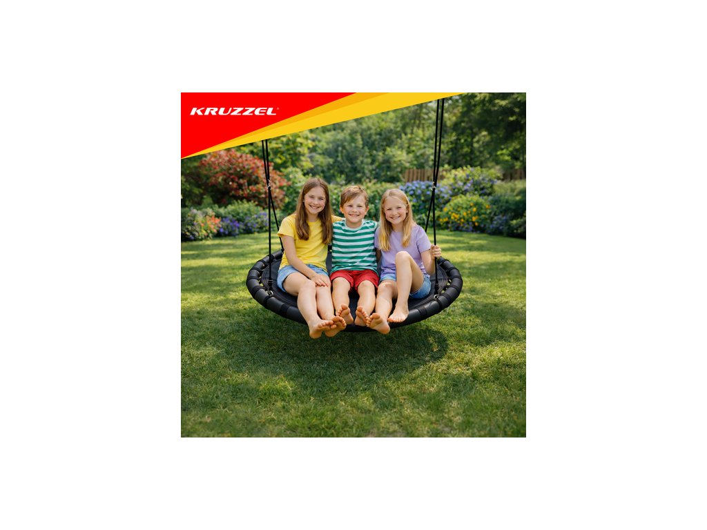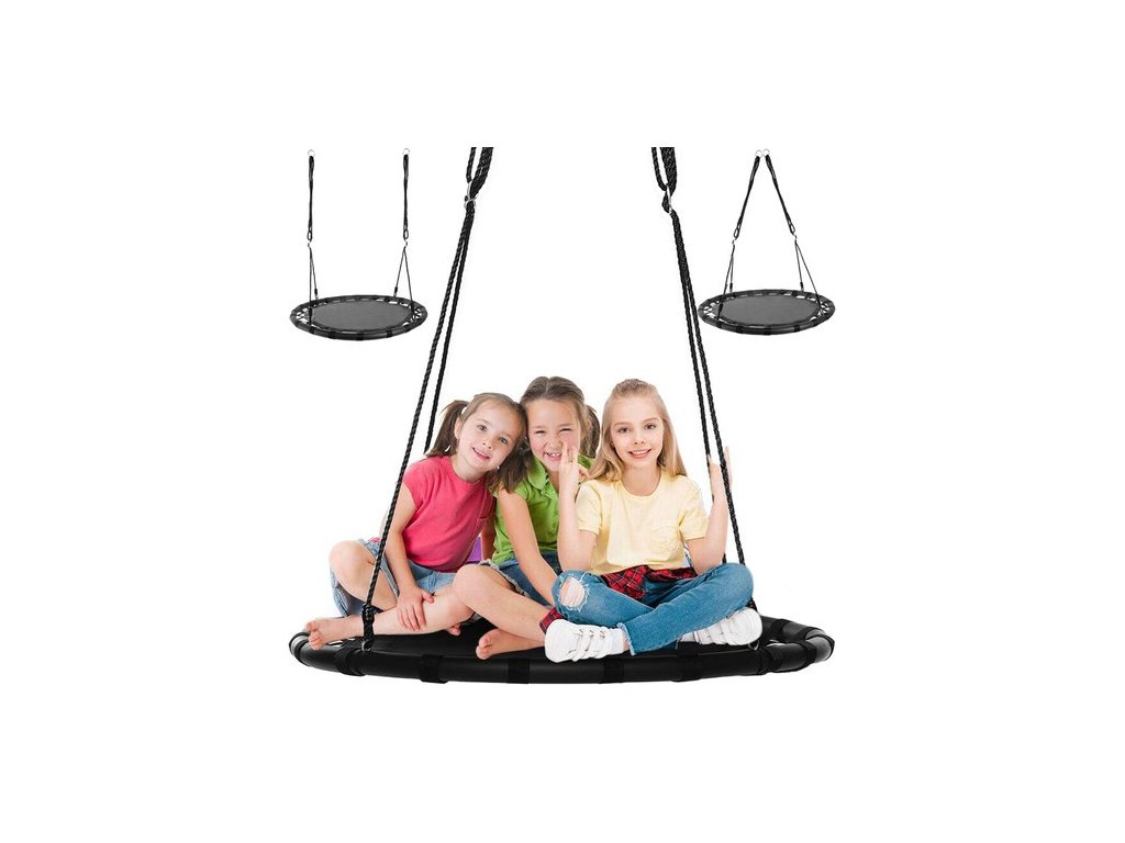 ? VELKÝ SEDÁK - houpačka má široký, kulatý sedák z železného rámu, použitý materiál polyester + nylon + EVA . Nosnost až 150 kg je možná díky použití pletených lan o tloušťce 10 mm. To zaručuje bezpečnost a umožňuje i dospělým prožít chvíle radosti. Je to ideální řešení pro velkou rodinu. Svou velikostí a tvarem je vhodný pro více osob.