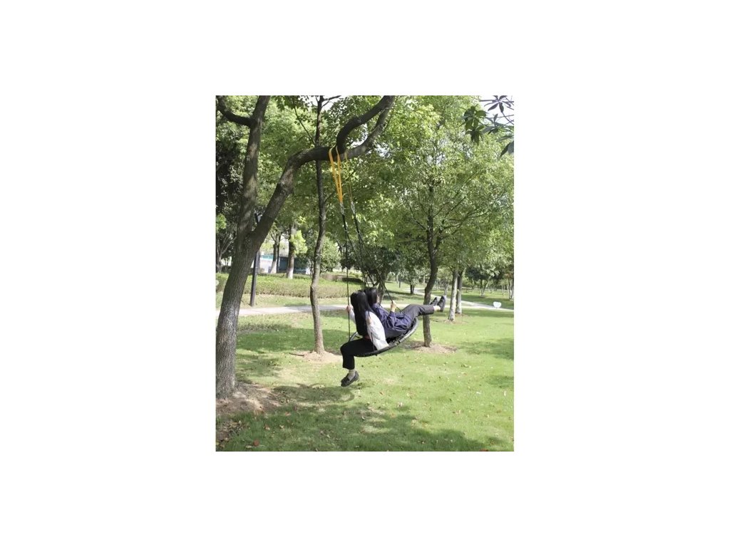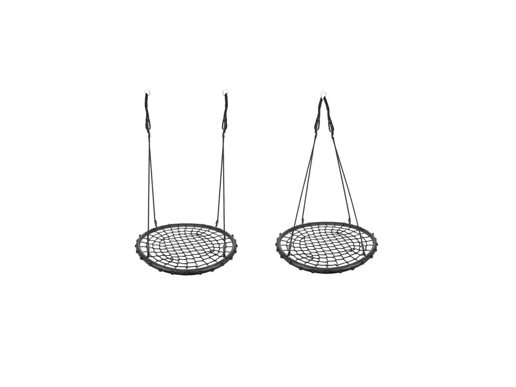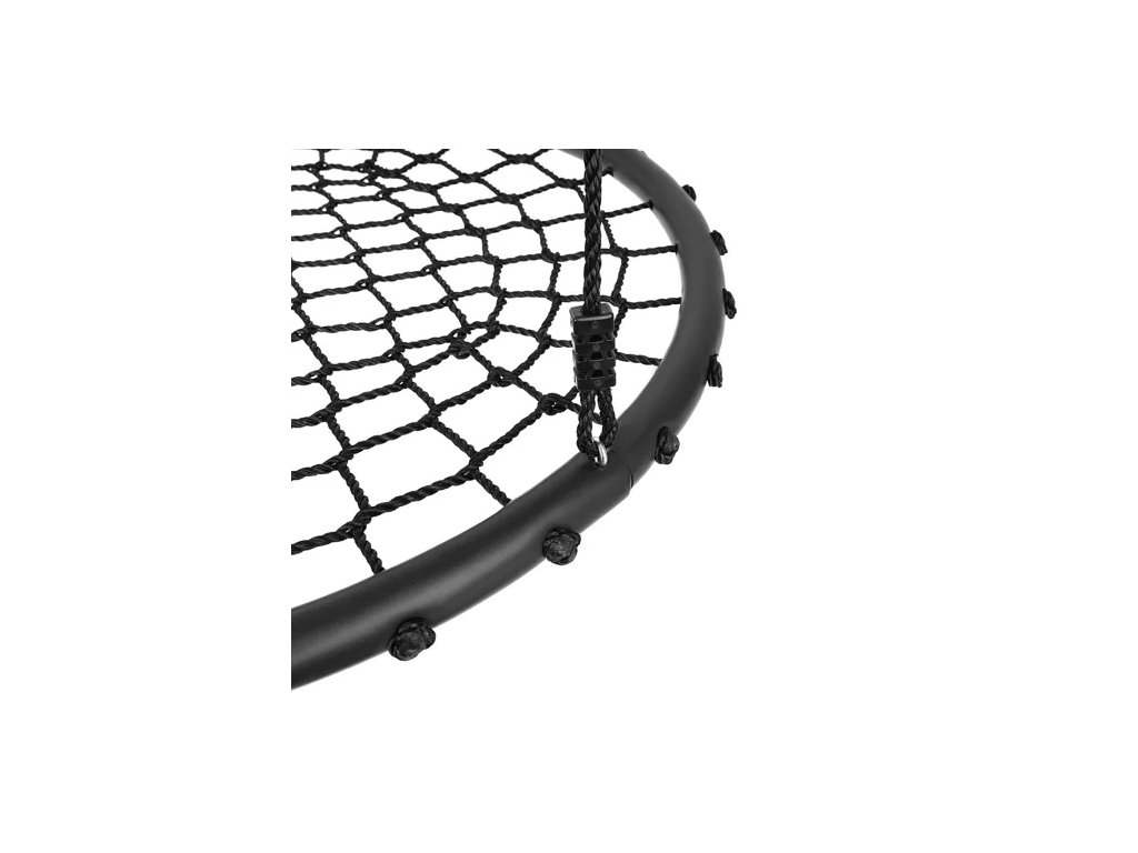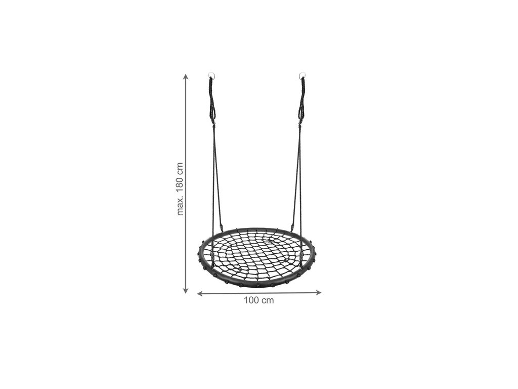 ? PROSTORNÉ SEDÁTKO - průměr sedátka je až 100 cm , což zajišťuje pohodlí při používání a umožňuje si na něm hrát i několik dětí. Sedák je vyroben z pletených PE lan, které poskytují dobrý úchop. Houpačka je vyrobena z vysoce kvalitního materiálu , díky čemuž je konstrukce odolná vůči povětrnostním vlivům.