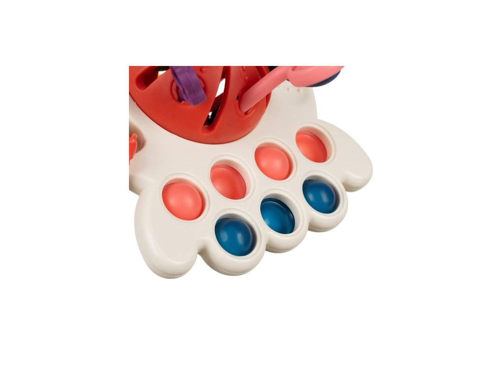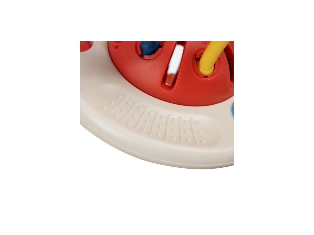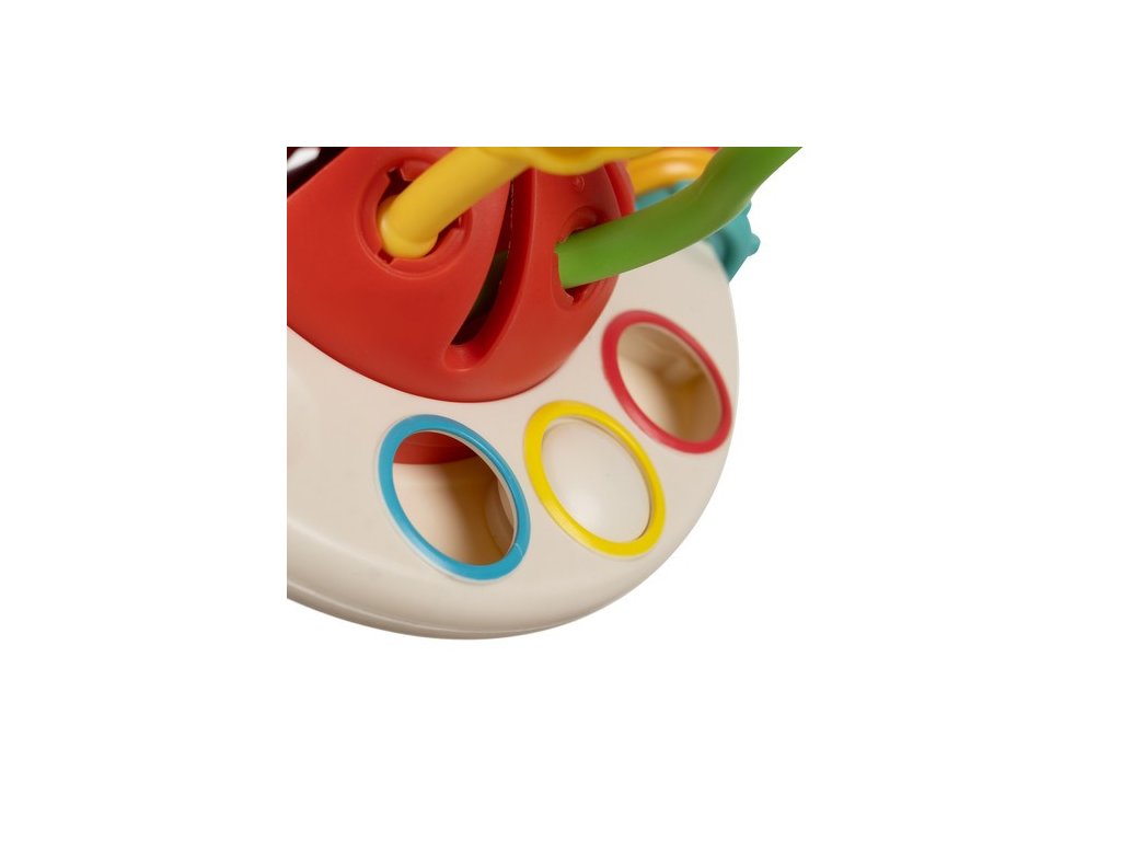 - BARVA - přátelský, tlumené barvy kousátka přitahují pozornost dítěte, aniž by byly příliš intenzivní pro jeho zrak. Díky tolika barvách hračky usnadňuje naučit se je rozpoznávat . Umístěno uvnitř kousátka zvonek/chrastítko , vydává jemné zvuky, což je další zapojuje sluch dítě.