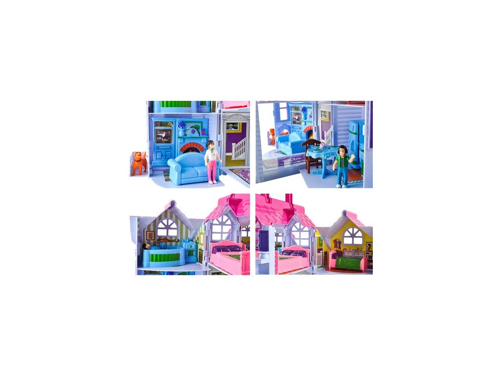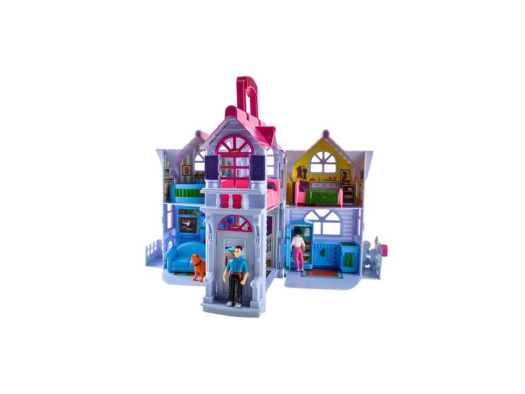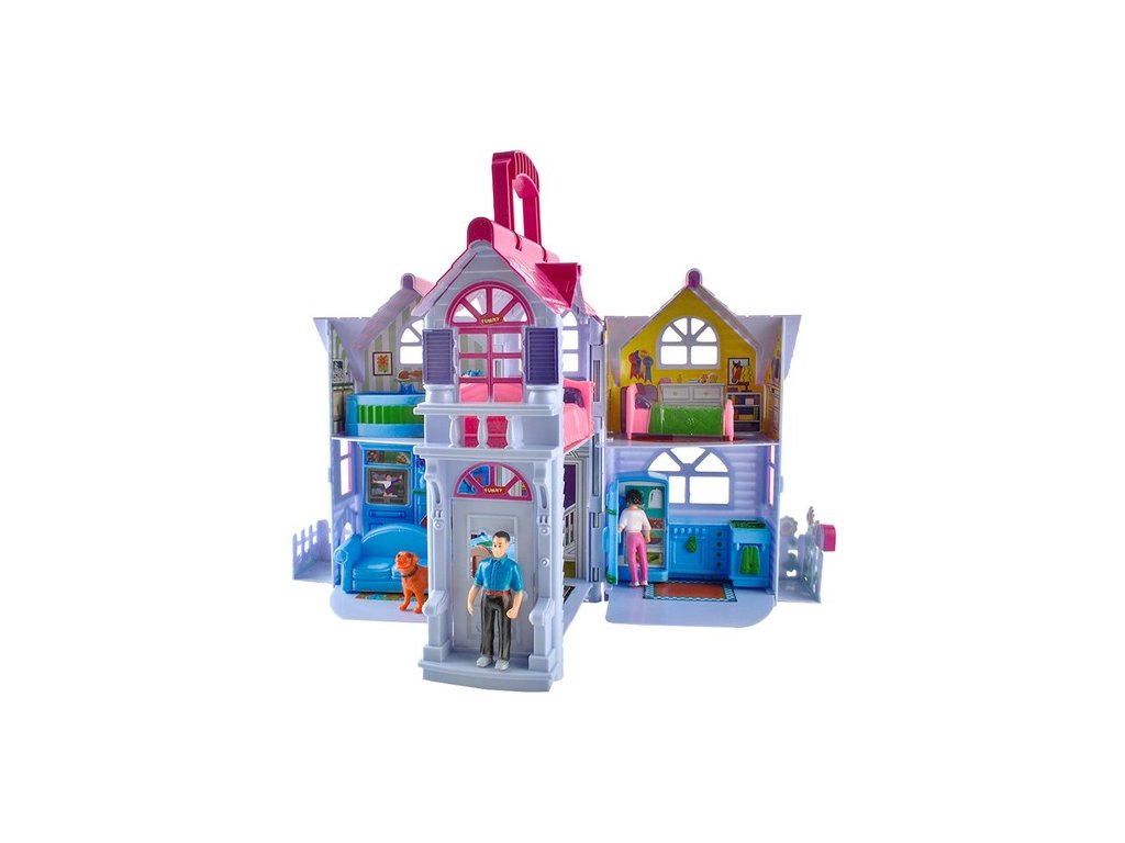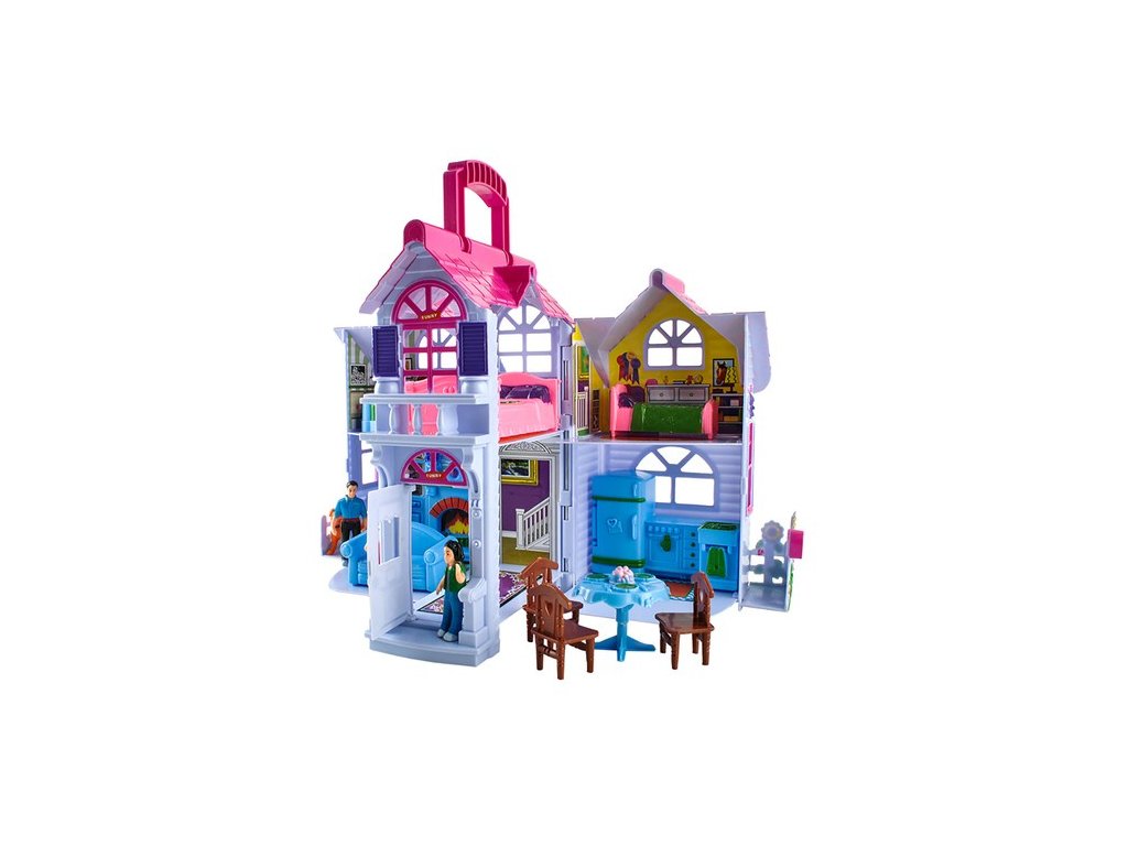 - Rozkošný domeček pro panenky – barevný domeček s mnoha místnostmi a různými doplňky je vysněnou hračkou každé dívky. Hrací domeček lze po hře složit, takže zabere méně místa a snáze se skladuje.