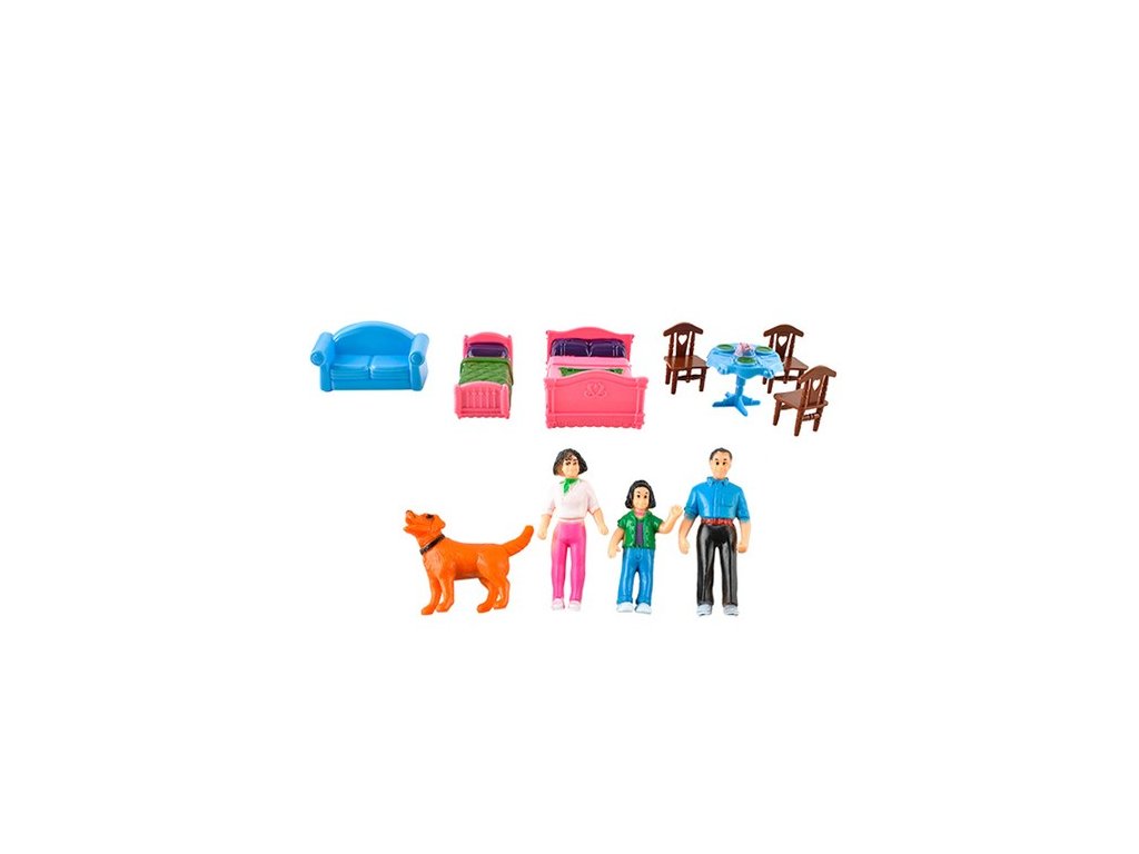 - HRAČKY V CENĚ – celá sada je vybavena „pohyblivými“ figurkami rodiny, psa a nábytkem. Dům má všechny prvky na jednom místě. Hra