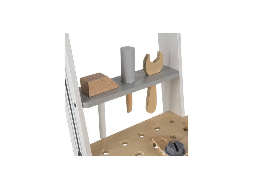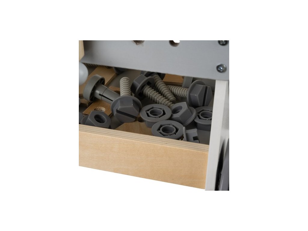 odolnost - dílna a dřevěné nářadí jsou mimořádně odolné a odolné vůči intenzivní hře, díky pevné konstrukci vydrží mnoho hodin kreativní hry