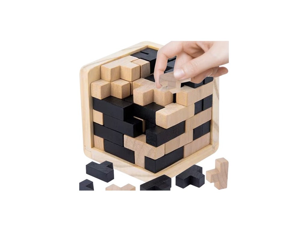 Dřevěná skládací kostka, kreativní logická hádanka pro děti i dospělé!