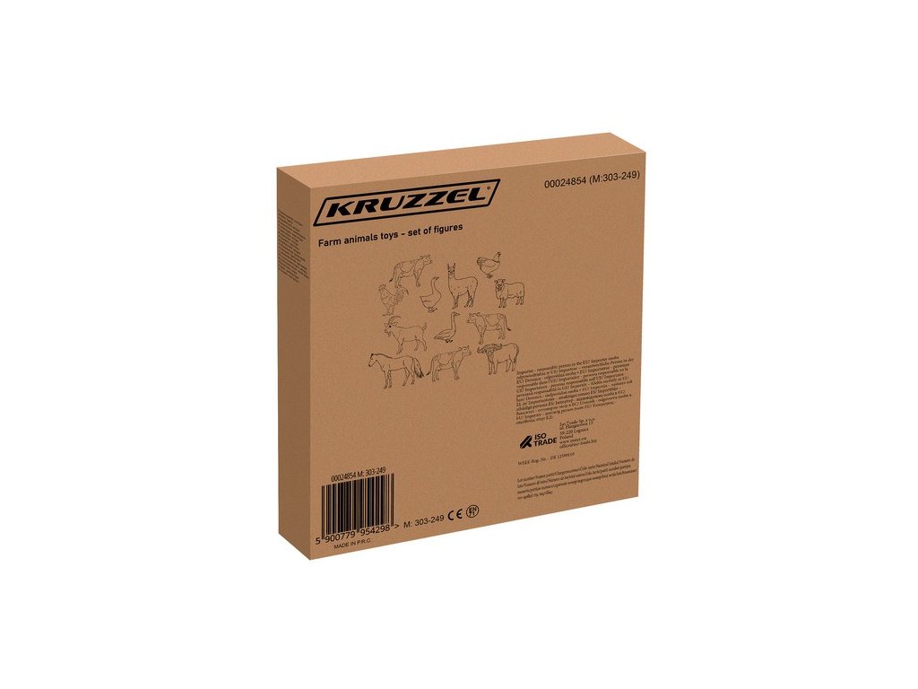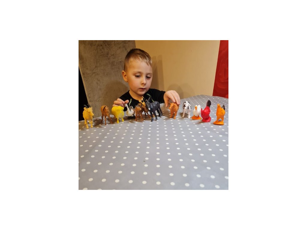 - figurky: ovce, kůň, krávy 2 různých plemen, koza, osel, slepice, kachna, buvol, husa, kohout, jelen