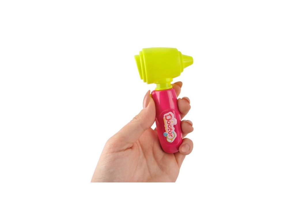 ? SPECIFIKACE - barva: modro-růžová; materiál: ABS + PP, ostatní: PE + PS + PVC + LDPE); rozměry: 32,5 x 29 x 60 cm; napájení: teploměr, otoskop, měřič tepové frekvence a zubní zrcátko 2 x LR1130 (AG10) baterie součástí balení; fonendoskop 2 x LR44 (AG13) baterie součástí balení; obrazovka 2 x AA 1,5 V baterie nejsou součástí balení; hmotnost sady: 1,2 kg; hmotnost s obalem: 1,42 kg.