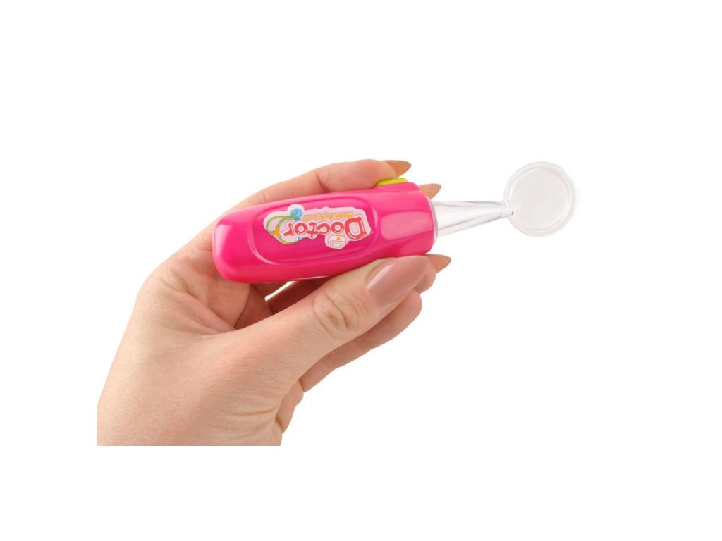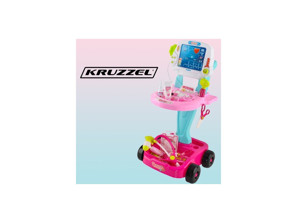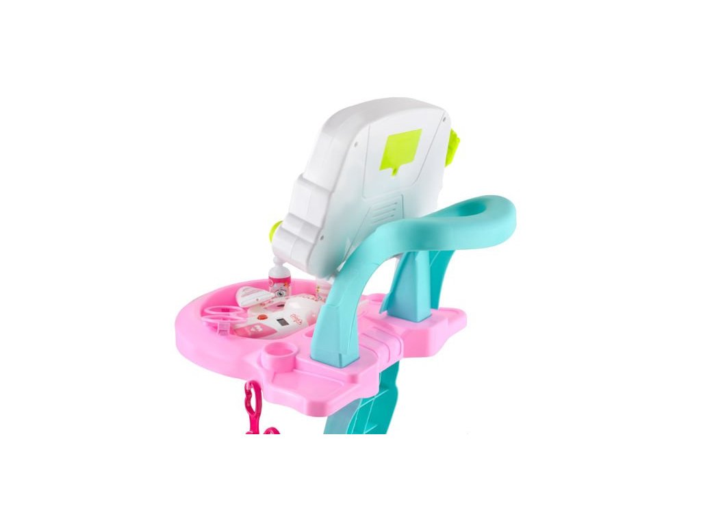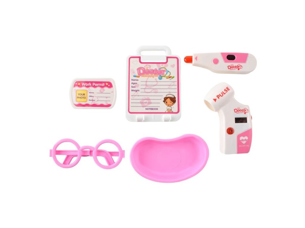 Sada se skládá z 18 prvků, které jsou umístěny v šikovném a lehkém 4kolovém vozíku. Množství dílů umožňuje praktické využití sady. Doktorské příslušenství a 2-úrovňový vozík s imitací EKG obrazovky a madlem umožňují pestrou a opakovanou hru. Díky „jízdečce“ si dítě hračku snadno přesune do jiné místnosti nebo si ji vezme na zahradu či na procházku. Kreativně můžete trávit čas s napodobeninami lékařských nástrojů, jako je stetoskop, otoskop, měřič srdečního tepu, teploměr, zubní zrcátko, neurologické kladívko, injekční stříkačka, nůžky, kleště, oční kapky, mýdlo na ruce v tubu, misku, skalpel, brýle bez čoček, lahvičku, připínací placku s místem pro vepsání jména a přiložení fotografie a plastový zápisník s možností zavěšení.