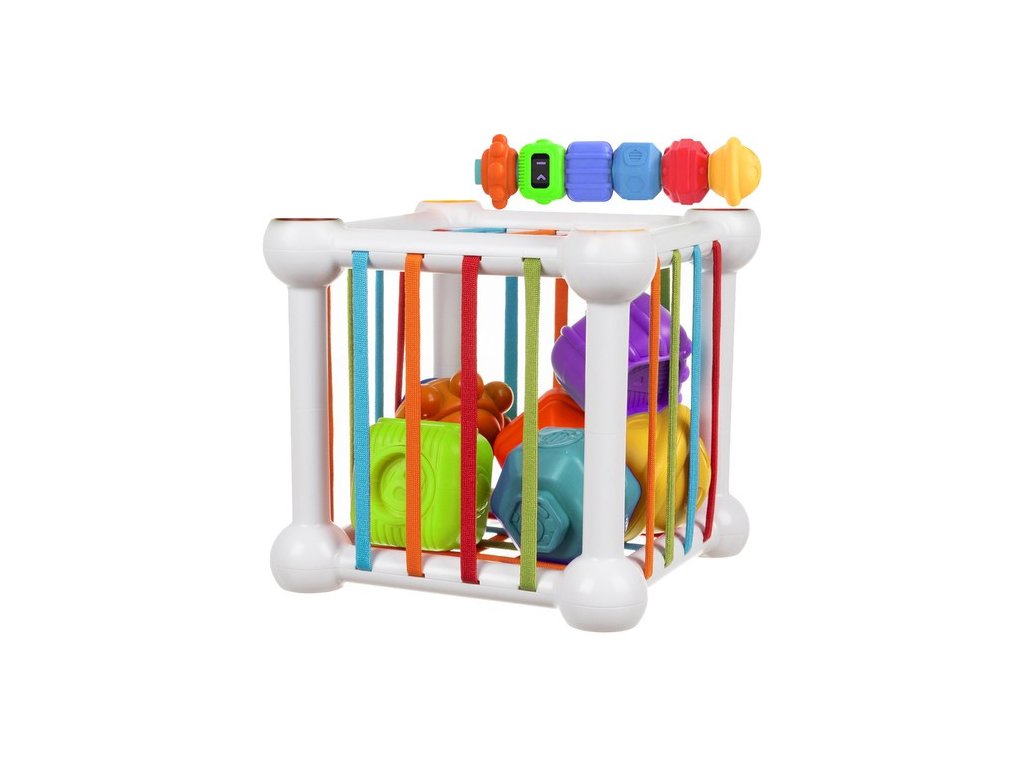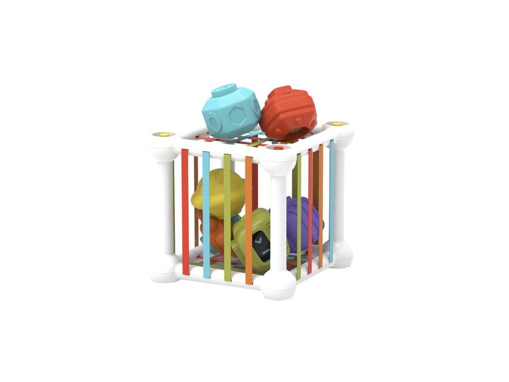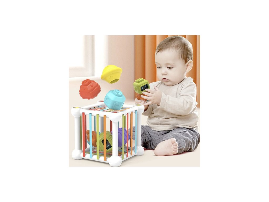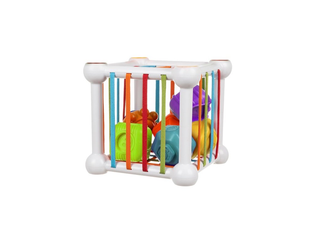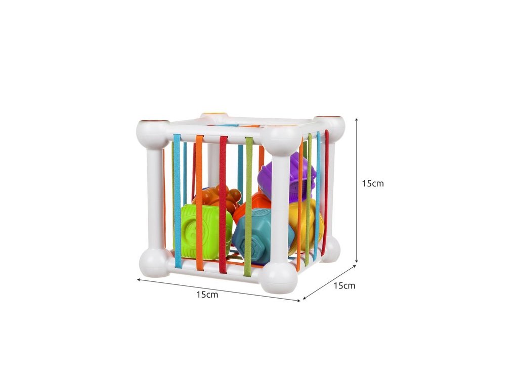 - PRUŽNÉ STĚNY - pružná kostka je hračka, která stimuluje smysly dítěte. Dítě vkládá a odebírá bloky přes pružné stěny z gumy se vyvíjí rychleji své manuální dovednosti .