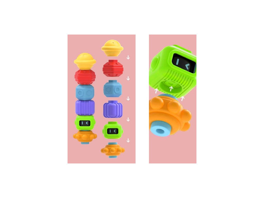 - SPECIFIKACE - materiál: ABS, ostatní: polyester + pružné syntetické vlákno) + 6 bloků (PP); barva: vícebarevná; věk: + 12 m; materiál: ABS, pryž, plast; rozměry: 15x15x15cm; hmotnost: 299g; hmotnost v balení: 402g;