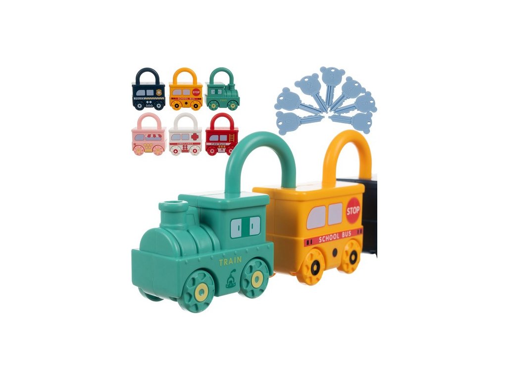 - KLÍČE A VISNÍ ZÁMKY - každý vůz má přiřazen jedinečný klíč , který pasuje pouze na jeden visací zámek , což znamená, že děti musí k otevření vozidla použít příslušný klíč. Každý klíč má tvar plyšového medvídka s otvorem v horní části a s s vyrytým číslem od 0 do 5 , což pomáhá při učení čísel. Navíc sada obsahuje: hlavní klíč který lze otevřít všechna vozidla , což přidává ještě více možností zábavy a vzdělávání. Proces párování klíčů rozvíjí koordinaci ruka-oko a logické myšlení.