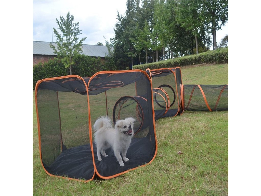 Merco Combi Tunnel je novinkou mezi agility tunely pro vaše malé čtyřnohé kamarády. Vytvořte svému pejskovi během chvíle hrací plochu a navíc bezpečný prostor, kde ho budete mít pod dozorem. Tato sada 6v1 je unikátní v tom, že každou část můžete použít samostatně, spojit všechny dohromady nebo je různě kombinovat. Spojení jednotlivých částí je jednoduché pomocí klasických zipů. Celá sada obsahuje 3 tunely a 3 různé ohrádky. Díky jednoduché konstrukci všechny části rychle rozložíte i složíte a následně s sebou celou sadu vezmete kamkoliv. Parametry: - 3x tunel: 120 x 40 cm - hexagon: délka strany 55 cm, výška 70 cm - krychle: délka strany 65 cm, výška 70 cm - stan: délka základny 70 cm, výška 120 cm - hmotnost sady: 4 kg - materiál: polyesterová síťovina + ocelový drát - součástí vak na uskladnění a přenášení - pro malá a střední plemena psůDoplňkové parametry