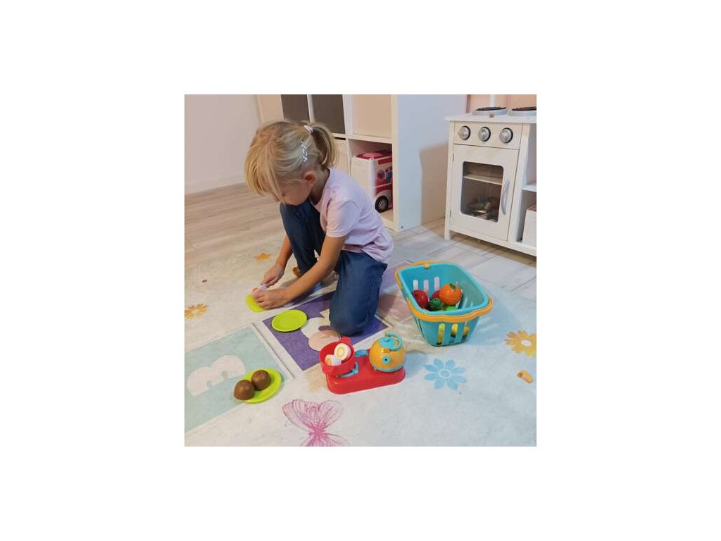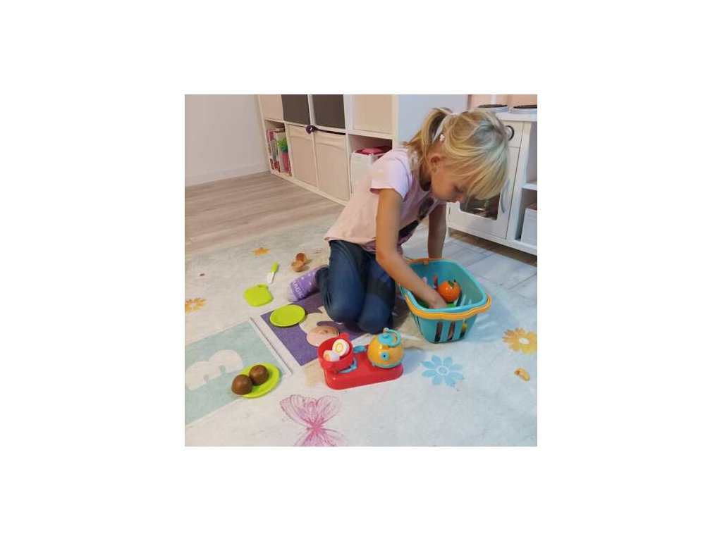 - HOŘÁK NÁKUPNÍCH KOŠÍK A HRNCE – sada má košík, do kterého se vejde veškeré příslušenství, což znamená, že dítě snadno přenese ovoce a zeleninu kamkoli. Další výhodou je mini vařič, hrnec a varná konvice.
