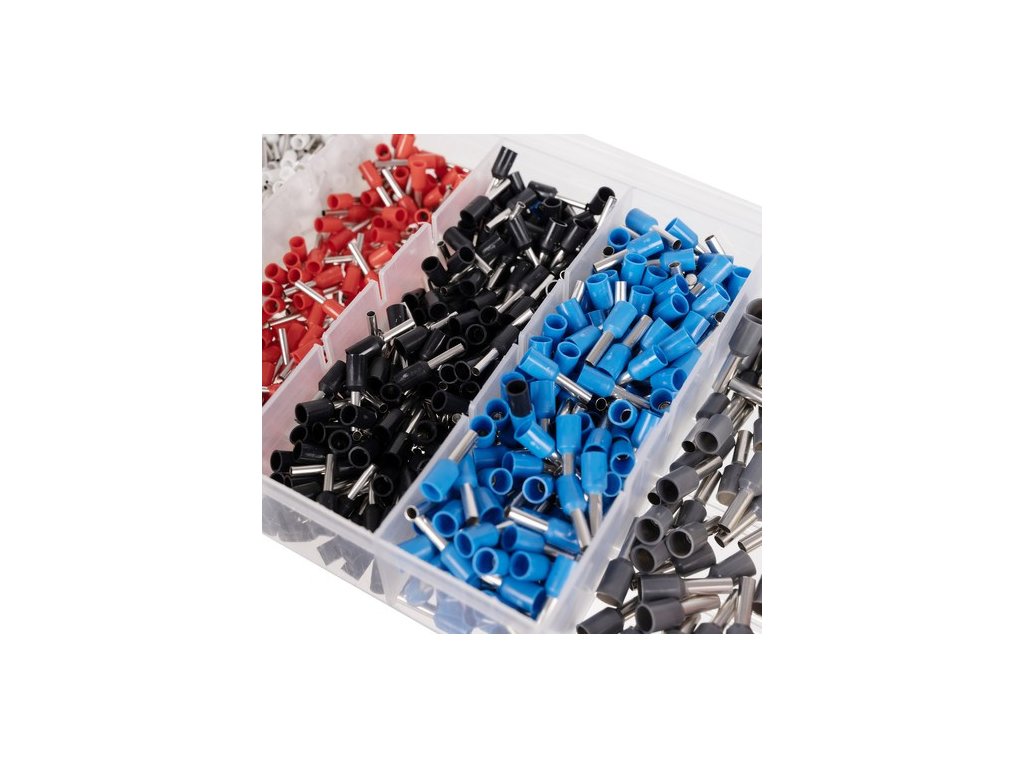 - ORGANIZÁTOR S 8 VELIKOSTMI RUKÁVŮ – sada s krimpovacím nástrojem obsahuje průhledný organizér, který pojme vše uvnitř 8 různých velikostí krimpovacích hrotů od 0,5 mm2 do 10 mm2 . Každá velikost je dodávána v jiné barvě.
