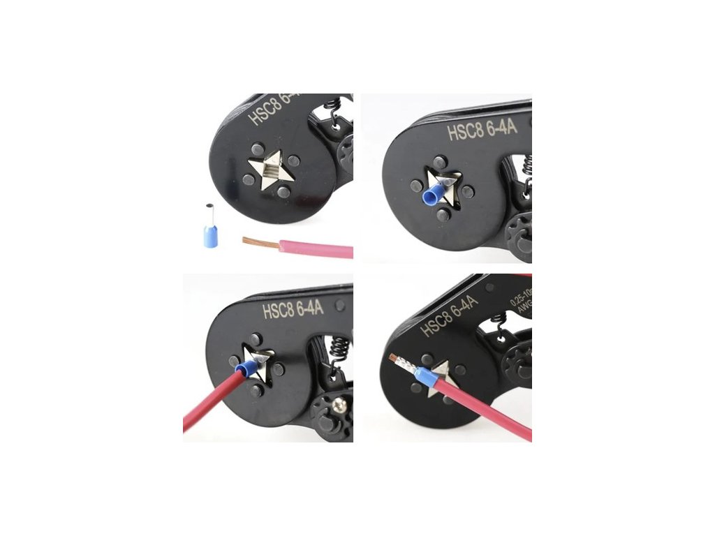 Profesionální čtvercová krimpovací lišta pro krimpování tenkostěnných koncovek v rozsahu 0,25-10 mm 2 . Výrobek je nezbytným nástrojem pro instalaci kabelových ok, který mohou používat profesionálové i amatéři. Užitečné pro všechny typy elektroinstalačních a elektroinstalačních a servisních prací.