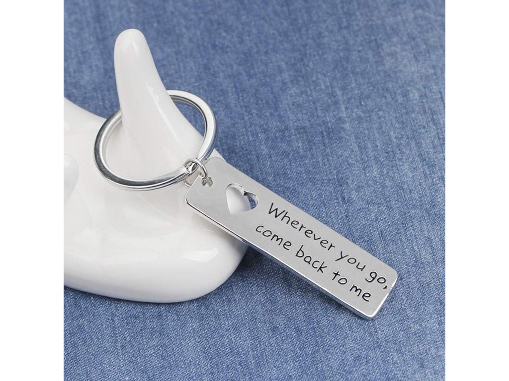 - Klíčenka s nápisem: "Kamkoliv jdeš, vrať se ke mně."