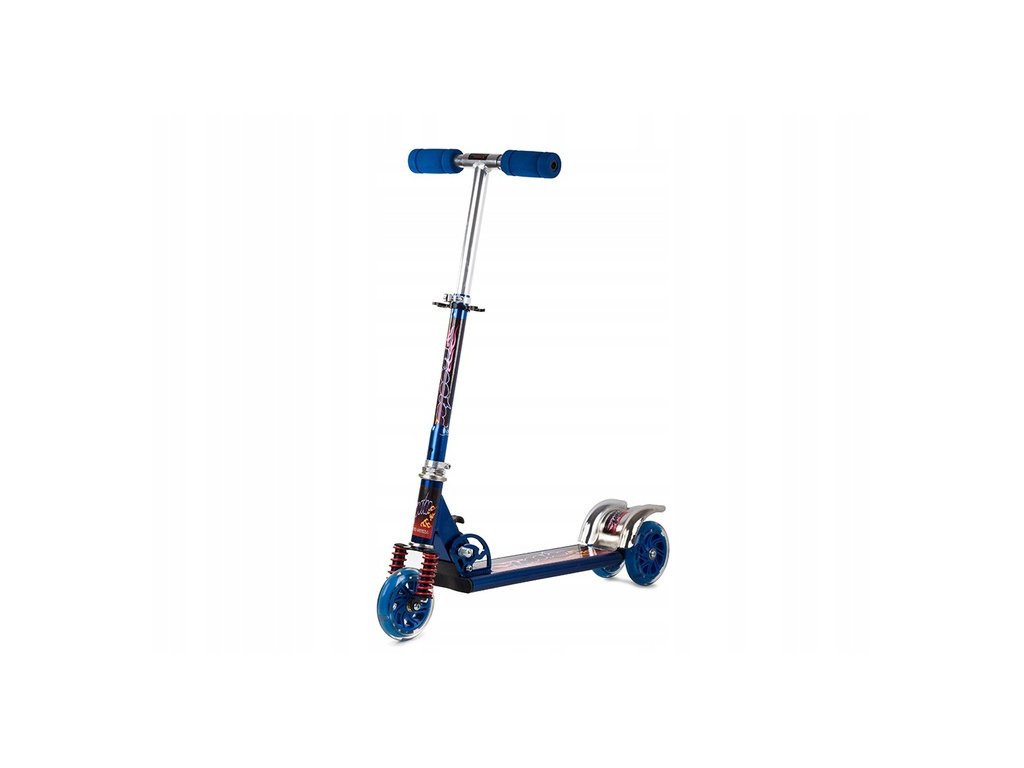 Tříkolová LED koloběžka s odpružením skládací, modrá, 18127_N