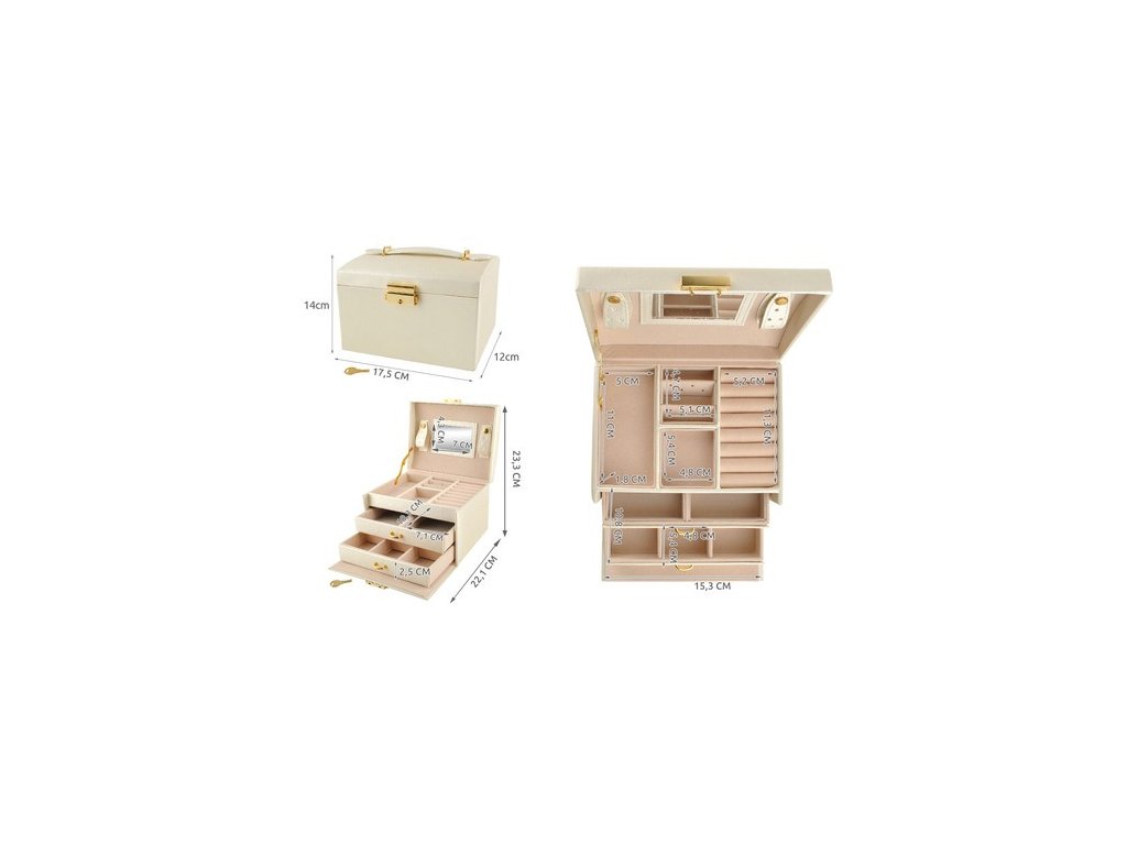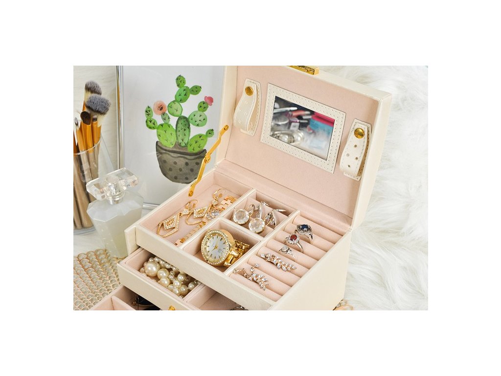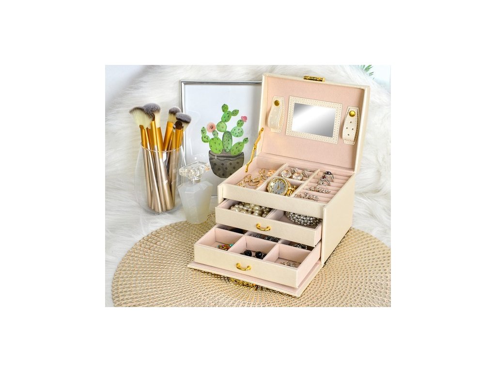 Krabička vám umožní se o vaše šperky skvěle starat, chránit je před poškozením a navíc je krásně vystaví. Použijte produkt speciálně určený pro tento účel a užijte si perfektně zorganizované a zabezpečené cennosti na jednom místě.