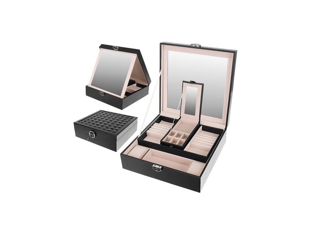 ZRCADLO – uvnitř pouzdra je výklopné zrcátko. Vynikající Perfektní pro oblékání šperků a nanášení make-upu . Nachází se pod zrcadlem přihrádka, která vám umožní uložit vaše nejcennější šperky .