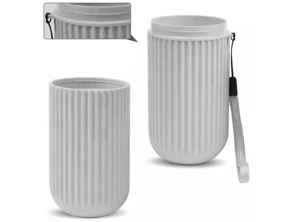 Kompaktní nádoba na zubní kartáček a zubní pastu. Ideální na cesty. Pohodlný způsob otevírání a zavírání (stačí odšroubovat nebo přišroubovat pouzdro). Přídavná šňůrka zvyšuje praktičnost nádoby.