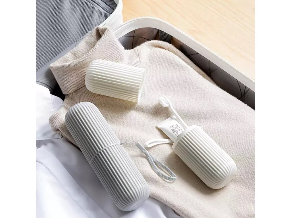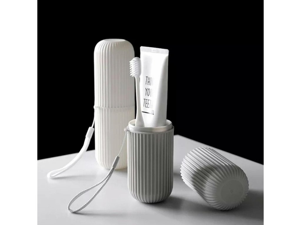 - Kompaktní nádoba na zubní kartáček a zubní pastu.