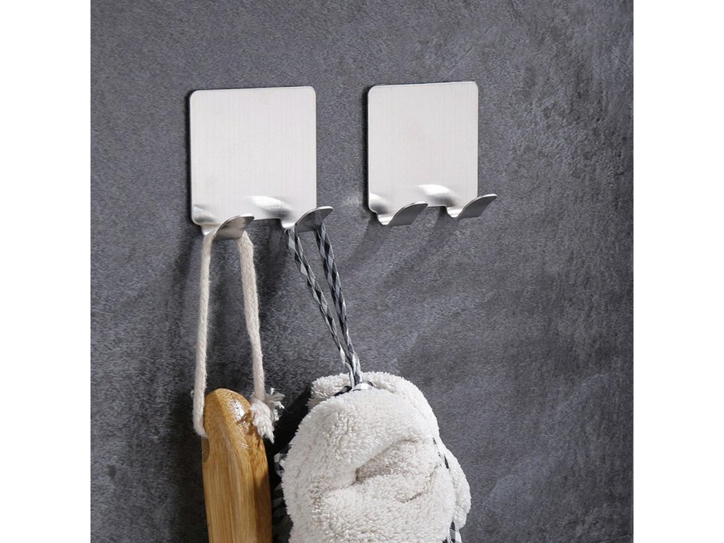 Ocelový, dvojitý nástěnný závěs - samolepící. Extrémně univerzální. Lze jej použít jako klasický koupelnový háček a v mnoha dalších aplikacích (např. na chodbě). Je velmi odolný - po nalepení pevně drží na zdi. Ramínko je odolné vůči náročným povětrnostním podmínkám (lze jej použít venku) a kontaktu s vodou.