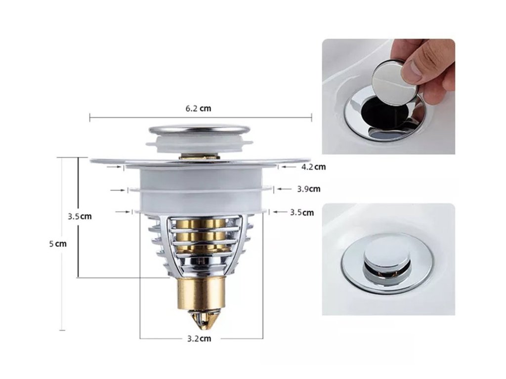 Masivní ocelová umyvadlová zátka s vnějším průměrem 62 mm. Zástrčka je univerzální, standardní rozměry umožňují snadnou montáž jakéhokoli umyvadlového dřezu a sifonu. Hodí se k koupelnovým a kuchyňským dřezům.
