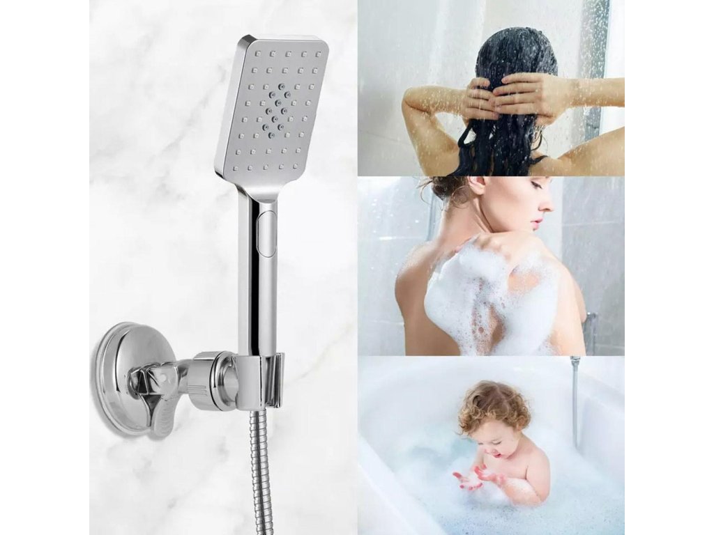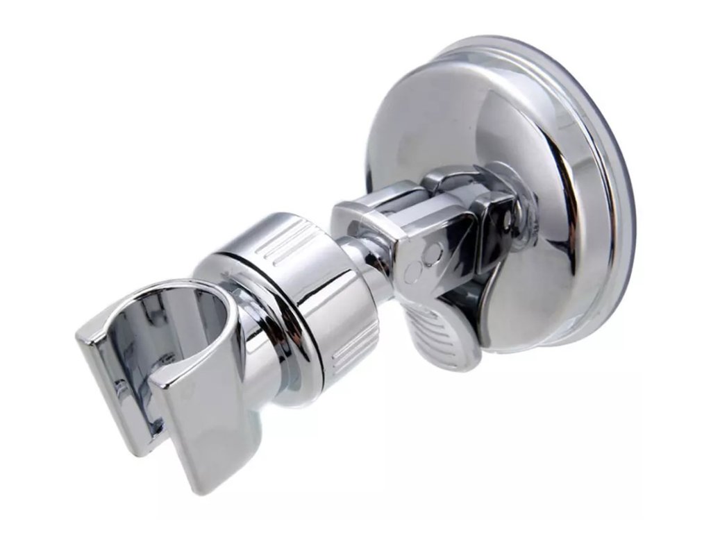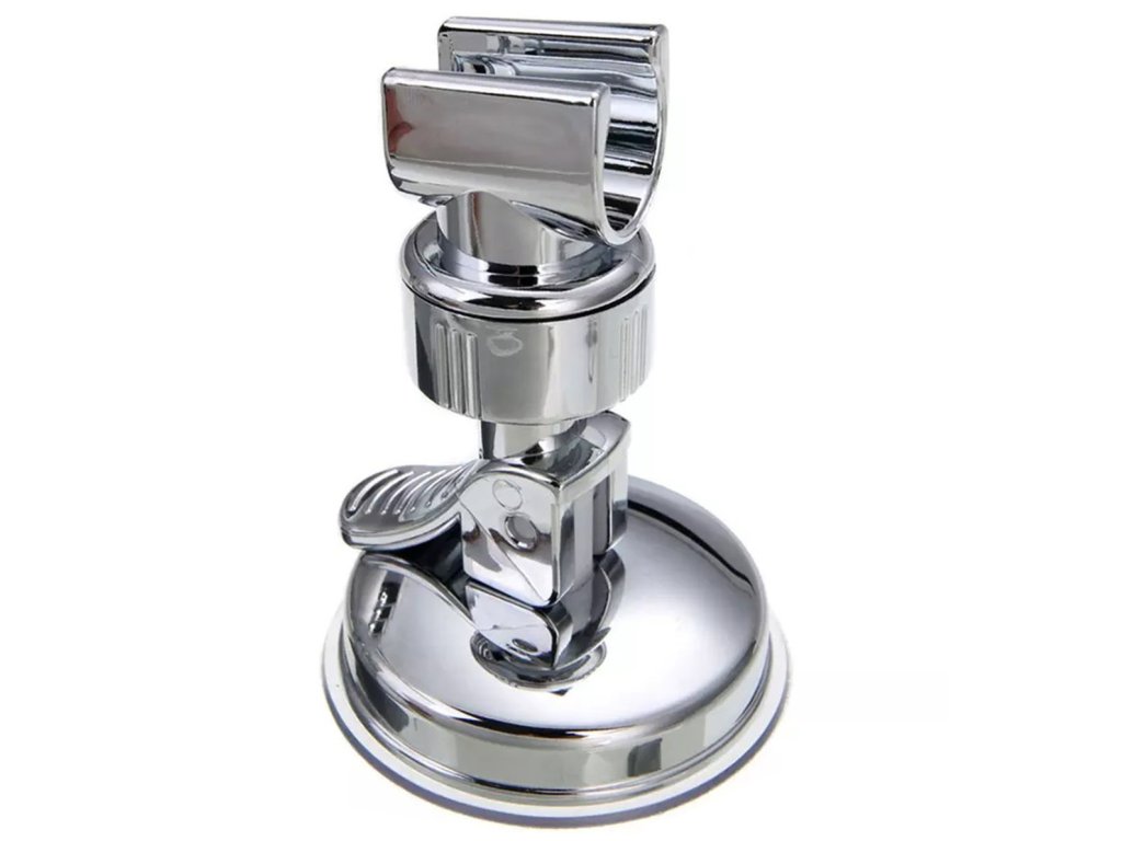 Kompaktní držák sprchové hlavice. Vybaven silnou přísavkou, díky které držák připevníme kamkoliv. Speciální klip umožňuje snadné odpojení držáku od stěny. Vyrobeno z pevného plastu imitujícího ocel.