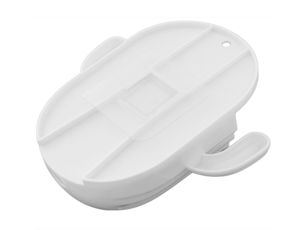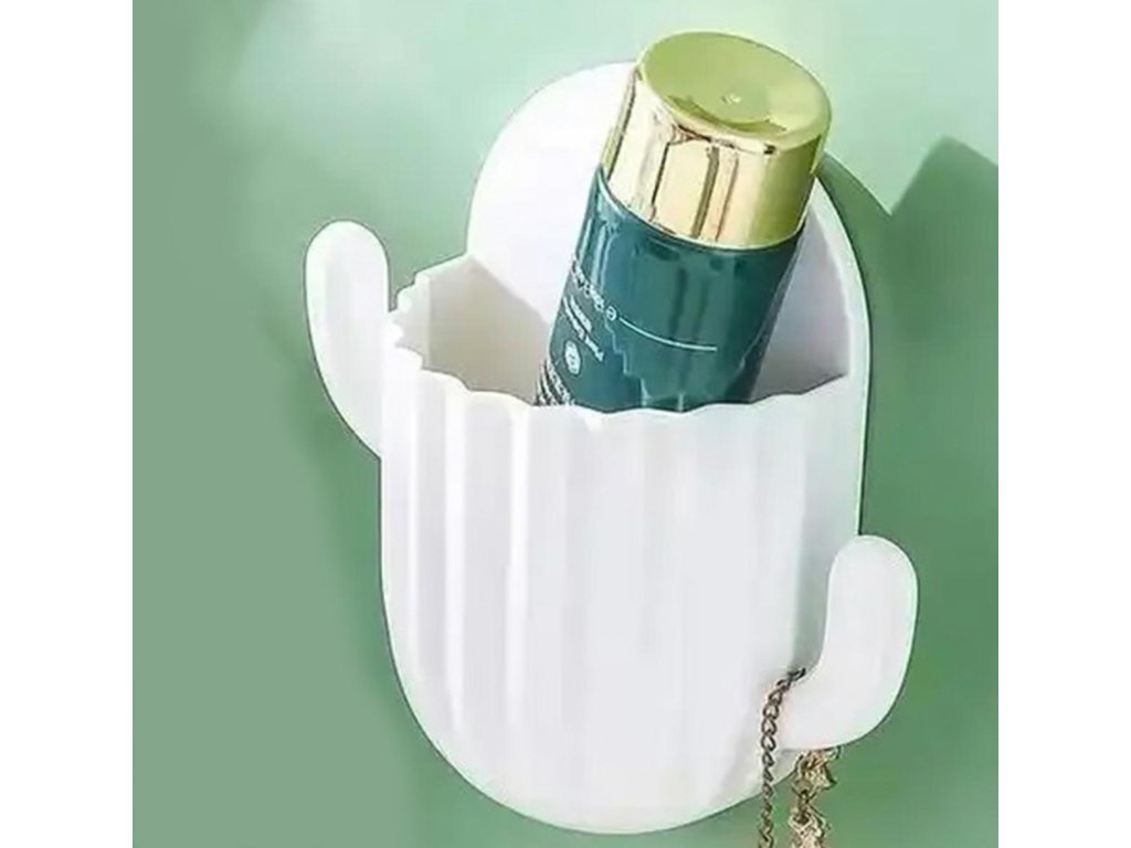 Samolepící koupelnový držák na drobnosti. Perfektní řešení pro uložení drobné kosmetiky. Dva přídavné háčky po stranách. Neinvazivní instalace na stěnu pomocí samolepicí pásky (součástí balení) nebo pomocí otvoru v horní části.