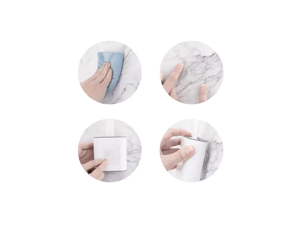 2 ZPŮSOBY SKLADOVÁNÍ – štětec má dodatečnou lepicí podložku, která umožňuje montáž štětce bez vrtání do dlaždice. To znamená, že se nemusíte bát prasknutí dlaždice. Jednoduše jej přilepte na zeď a držák štětce a zavěste. Další možností je umístit ho na podlahu.