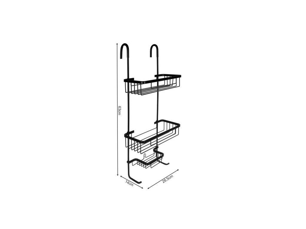 - SPECIFIKACE – materiál: hliník + ABS povlak; barva: černá; nerezová ocel: ano; pozastaveno: ano; stabilizace přísavkou: ano; rozteč: 20,5cm; počet polic: 3; rozměry: 63/14/28,5cm; hmotnost: 0,65 kg; hmotnost balení: 0,89 kg.
