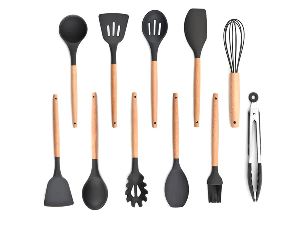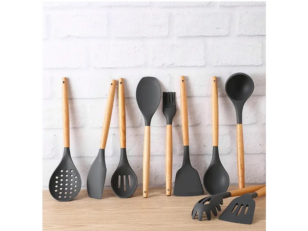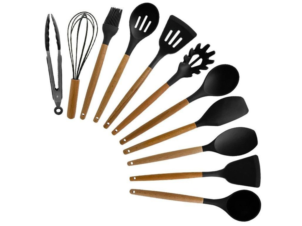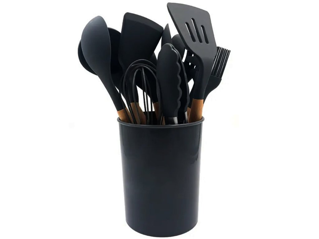 Multifunkční a kompletní sada kuchyňských doplňků. Sada obsahuje až 12 nástrojů, které jsou nenahraditelné v každé kuchyni. Vyrobeno z lehkého a odolného materiálu, který nepoškrábe povrch nádobí (silikonové hroty). Odolný vůči vysokým teplotám a bezpečný při kontaktu s potravinami. Sada obsahuje praktickou nádobu, která zároveň slouží jako odkapávač.