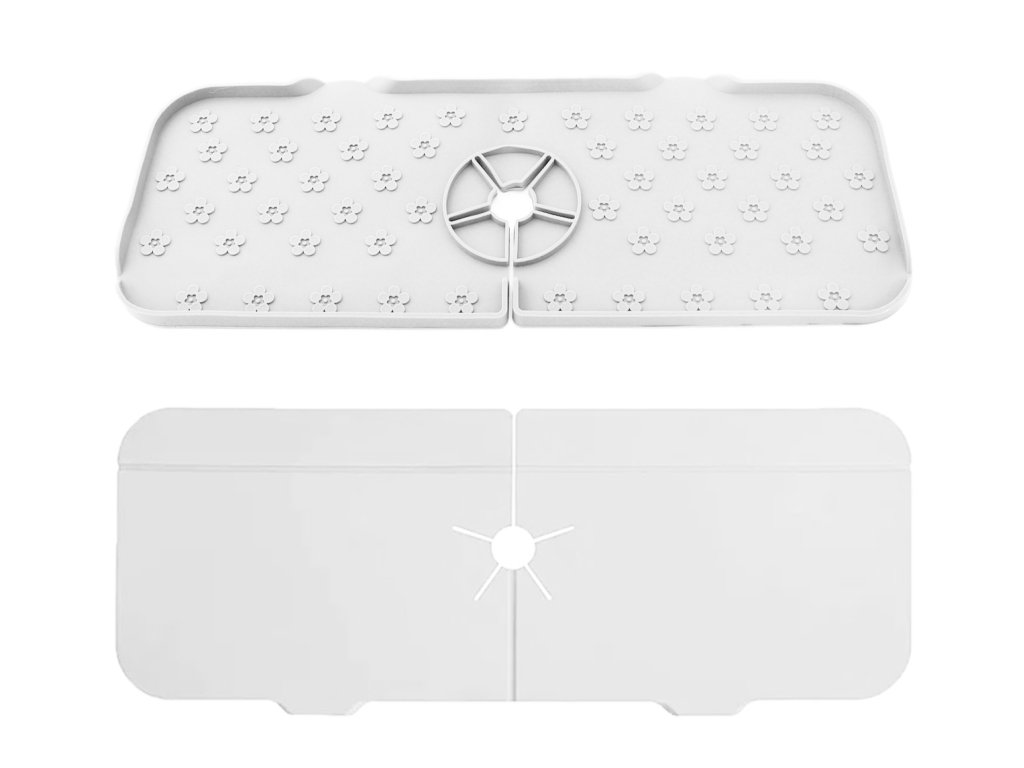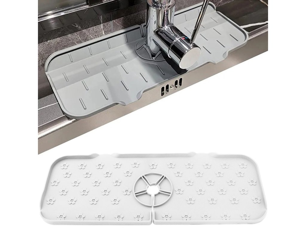 Silikonová podložka na vnitřní stranu dřezu. Chrání kuchyňskou desku před navlhnutím. Usnadňuje tok vody přímo do odtoku pomocí speciálního ražení. Vyrobeno z pružného materiálu, který se dokonale přizpůsobí tvaru dřezu. Snadno se udržuje v čistotě - stačí ji vytáhnout a opláchnout.
