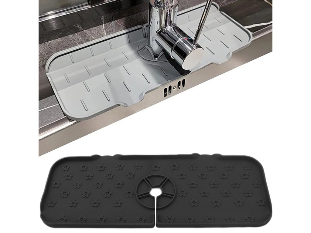 Silikonová podložka na vnitřní stranu dřezu. Chrání kuchyňskou desku před navlhnutím. Usnadňuje průtok vody přímo do odtoku pomocí speciálních prolisů. Vyrobeno z pružného materiálu, který se dokonale přizpůsobí tvaru dřezu. Snadno se udržuje v čistotě - stačí ji vytáhnout a opláchnout.