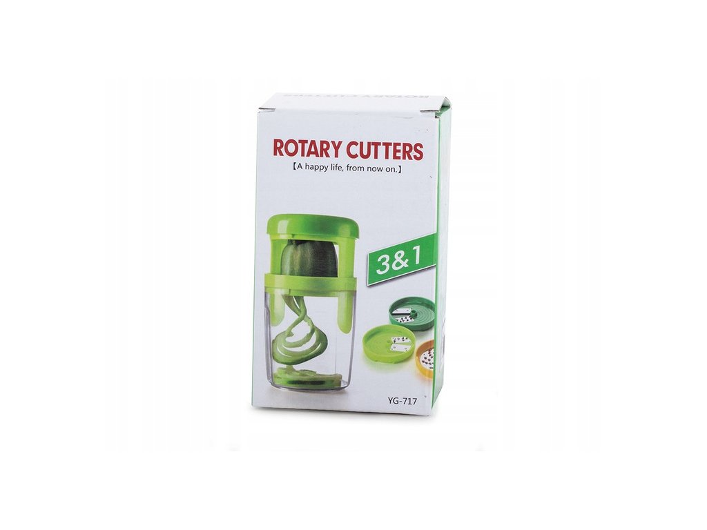 Spirálový kráječ (ořezávátko) na zeleninu a ovoce je úžasné zařízení užitečné v kuchyni pro zdobení pokrmů. Díky tomu vaše jídlo získá charakter a bude krásně prezentováno na talíři. Z dekorativního zeleného struhadla se vyrábějí nekonečné proužky tenčí nebo tlustší mrkve, okurky, cukety a jiné tvrdé zeleniny. Žluté struhadlo použijte na strouhání např. zeleniny nebo sýra.