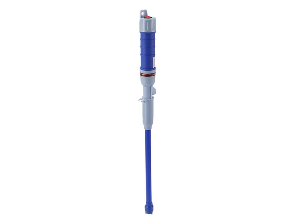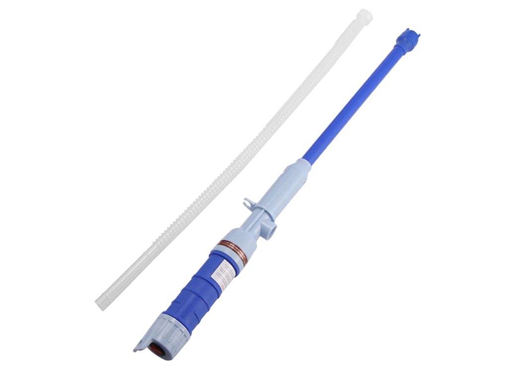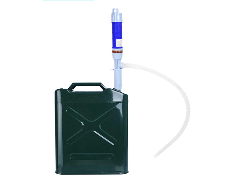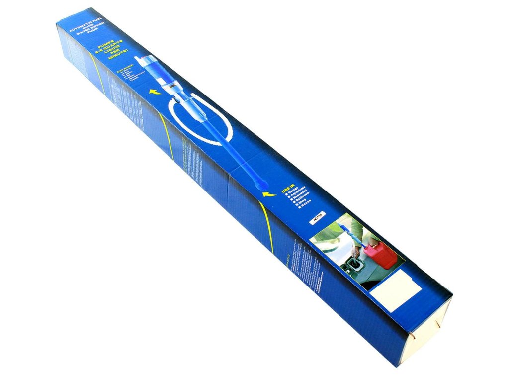 - Velmi snadné použití, stačí ponořit jeden konec pumpy do kapaliny, vložit výstupní trubici do nádoby a stisknout tlačítko na horní straně pumpy.