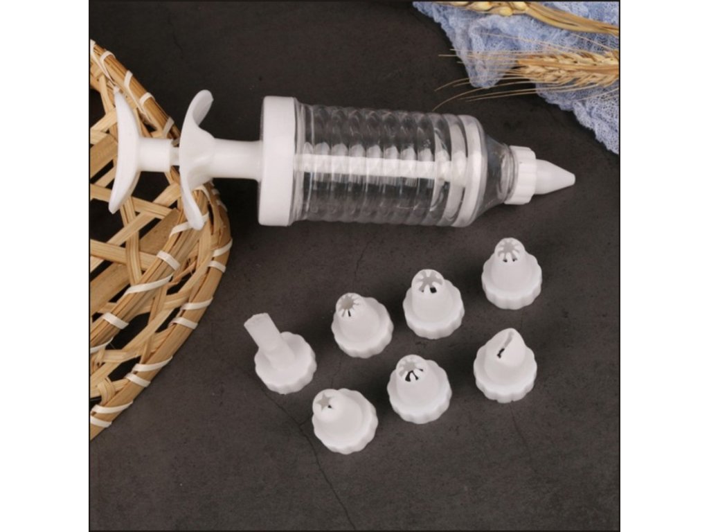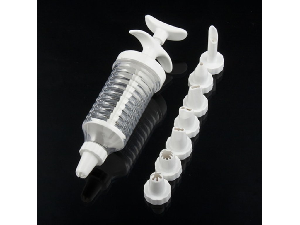 Stříkačka na zdobení dortů + 8 hrotů. S jeho pomocí krásně ozdobíte dorty a talíře, na kterých pokrmy podáváte.