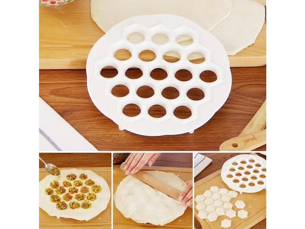 Forma na výrobu knedlíků a pelmenů. S naší formou rychle vytvoříte těsto na lahodné knedlíčky nebo placičky, které můžete naplnit libovolnými ingrediencemi. Vyrobeno z pevného plastu, který lze rychle omýt pod tekoucí vodou. Je vybaven až 19 otvory, takže se neuvěřitelně snadno používá. Díky tomu se pirogy připravují ve velkém měřítku mnohem snadněji :)