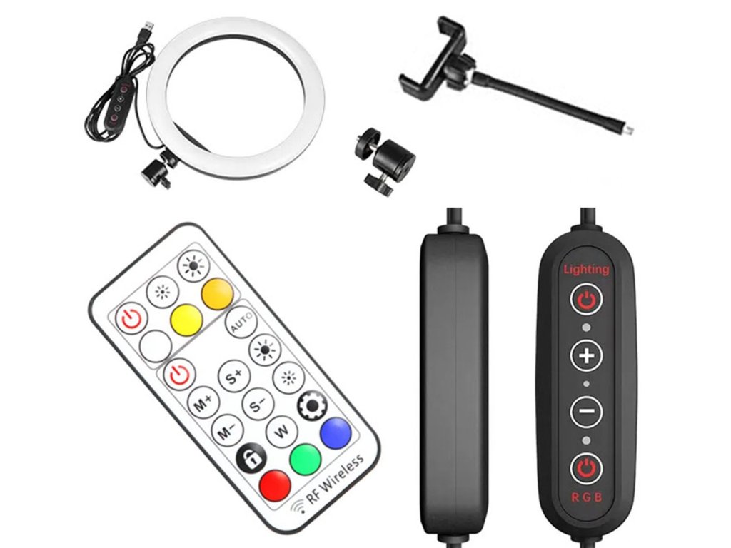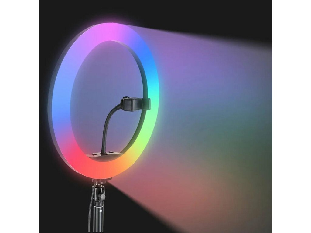 Perfektní sada osvětlení pro každého milovníka selfie! RGB LED kruhová lampa s možností změny barvy osvětlení. Dodává se s třínohým stojanem (stativem), který lze vysunout do výšky až 210 cm. Tohle je rozhodně fotografická nutnost! Nezbytné vybavení pro každé domácí fotoateliér. Zajistí správné světelné podmínky pro každou fotografii a záběr. Lampa má mnoho režimů svícení (včetně změny barevné palety RGB v několika režimech). Prstencová struktura lampy umožňuje vynikající a rovnoměrné osvětlení pracovního prostoru a fotografovaných osob nebo objektů. Skvělé řešení, které bude fungovat za všech podmínek a v každém fotoateliéru. Díky své lehkosti a mobilitě ve složeném stavu jej lze s úspěchem používat i venku. Použití energeticky úsporných LED diod nevyžaduje napájení ze sítě, postačí standardní USB port nebo powerbanka.