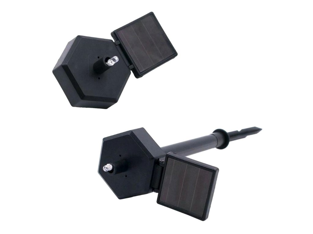 - Je poháněn solární energií z polykrystalického panelu (který nabíjí vestavěnou baterii).
