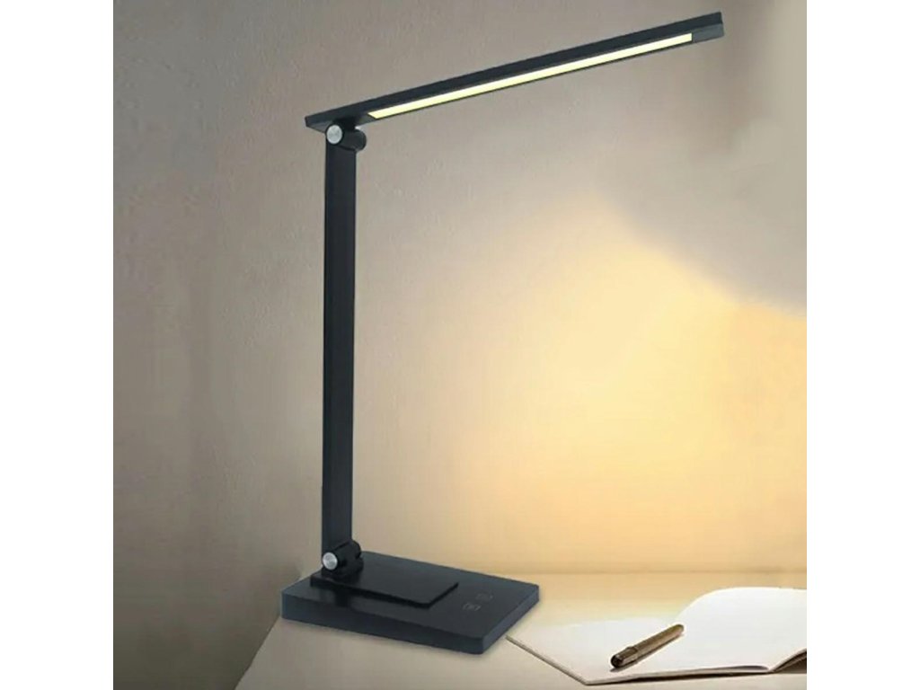 Kompaktní, nastavitelná stolní LED lampa s pohodlným dotykovým panelem. Vybaveno funkcí dotykového nastavení jasu a 5krokovým nastavením barvy světla. Díky použití LED diod je extrémně energeticky úsporná a mnohem odolnější než tradiční svítidla. Má základnu s dotykovými ovládacími tlačítky. Velmi stylový a praktický doplněk na každý pracovní stůl. Ideální pro použití uvnitř místností, jako jsou kanceláře nebo studovny. Sada obsahuje USB kabel pro napájení zařízení.