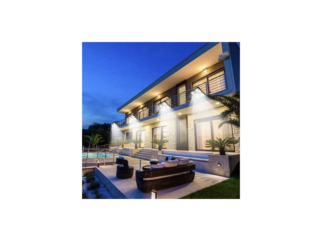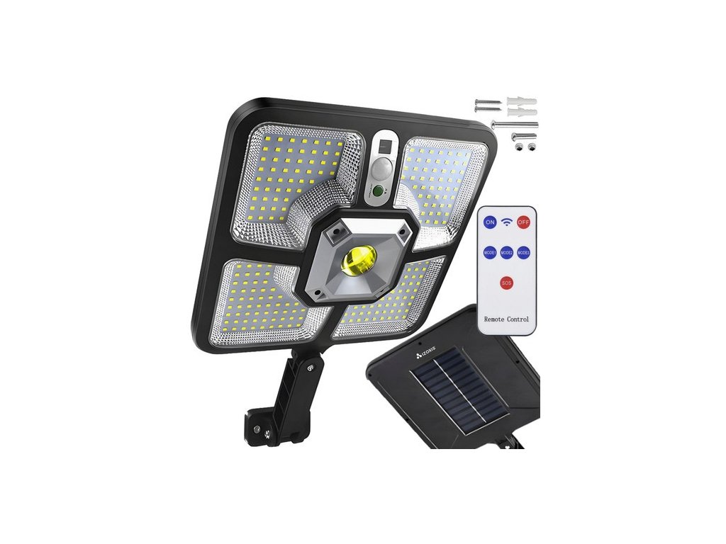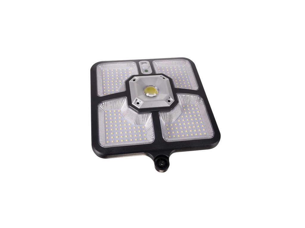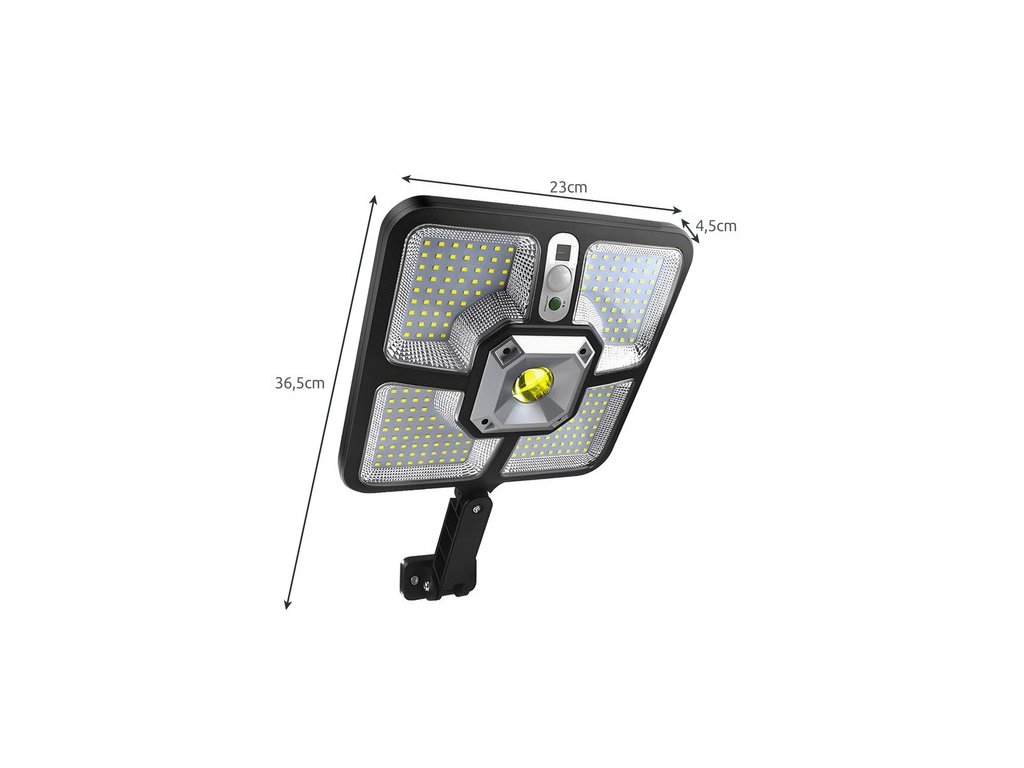 - SPECIFIKACE: barva: černá; barva světla: studená bílá; materiál: ABS, ostatní: PC + PP + polysilikon; lampa se skládá z: 4 segmentů po 55 SMD diodách, celkem 220 diod; 15 COB čočka; vodotěsné: IP65; dosah detektoru pohybu: 5 m; baterie: 2 x 1200 mAh; pracovní doba: jaro léto: 6-8 h; zima: 8-10 h; napětí: 5,5V; výkon: 8W; úhel osvětlení: 120°; rozměry: 36,5 x 23 x 4,5 cm; hmotnost: 0,633 kg; hmotnost balení: 0,813 kg.